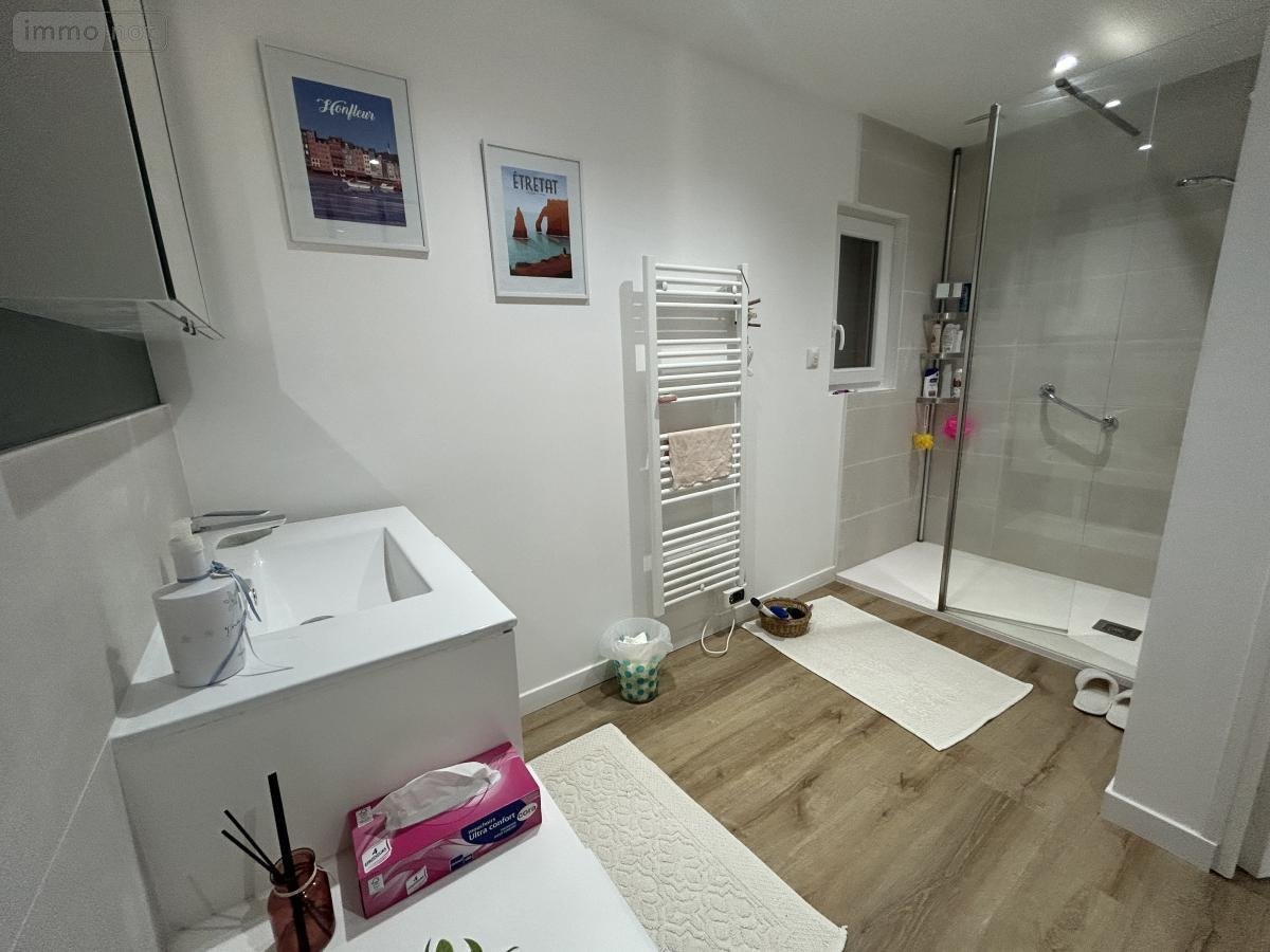 - Entrée, séjour avec cheminée de 60m², cuisine de 13m², wc, couloir, chambre de 16m² avec sa salle d'eau de 7m².