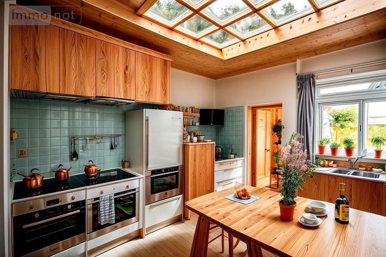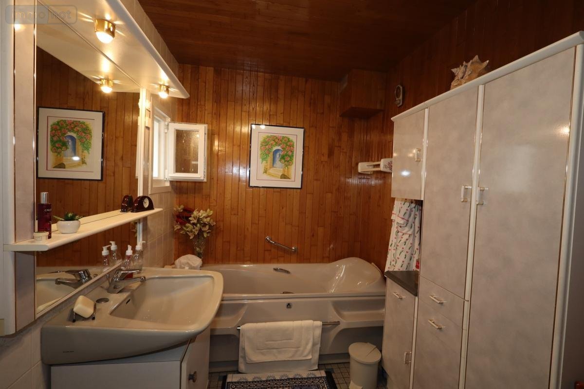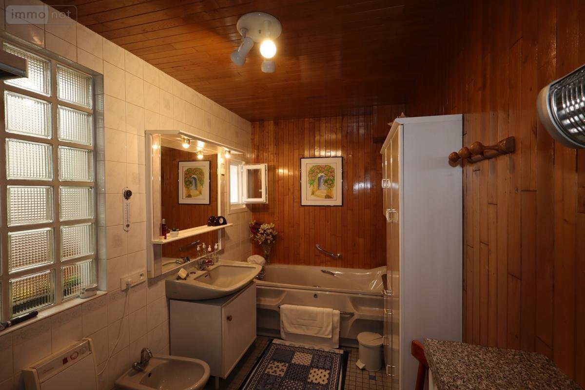 Au rez de chaussée : une entrée, une cuisine, un salon séjour, une salle à manger, une salle de bains avec douche et baignoire, un WC