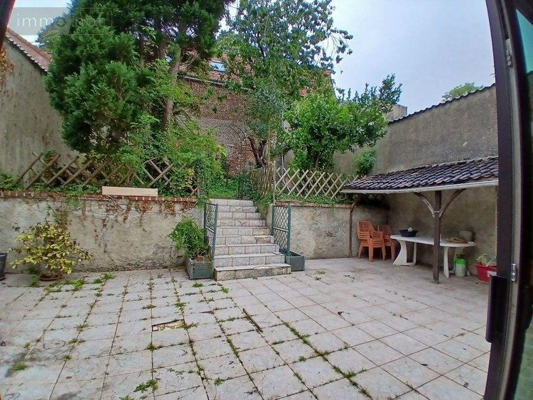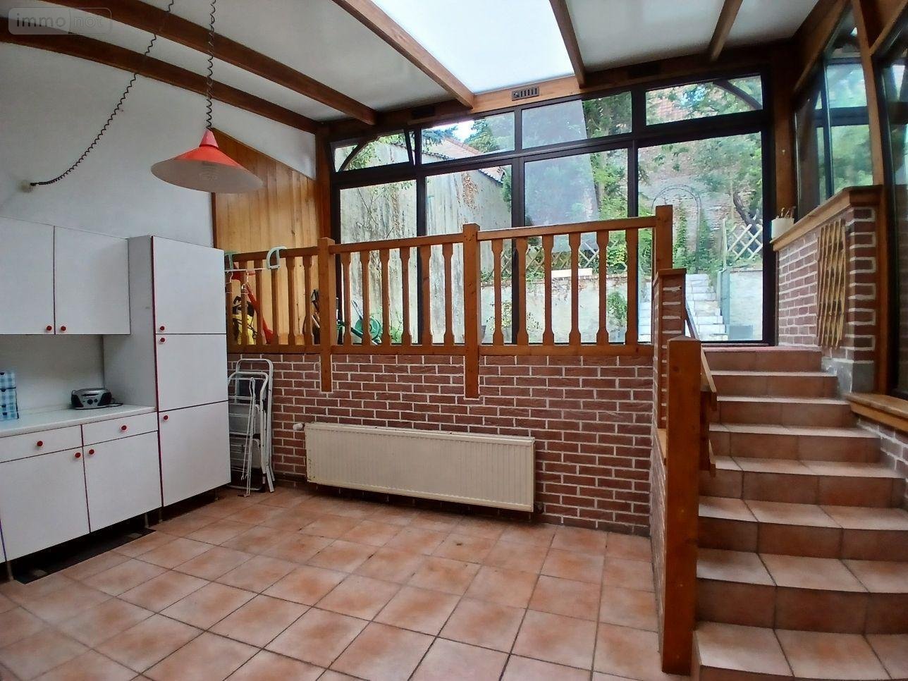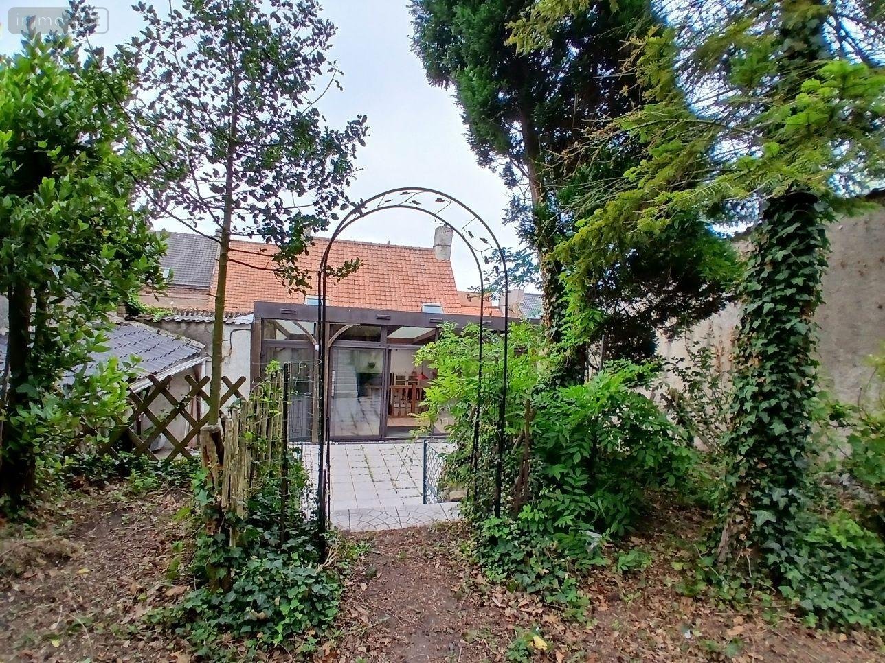 Accès à une véranda donnant sur une grande terrasse avec abri bois, et un jardin