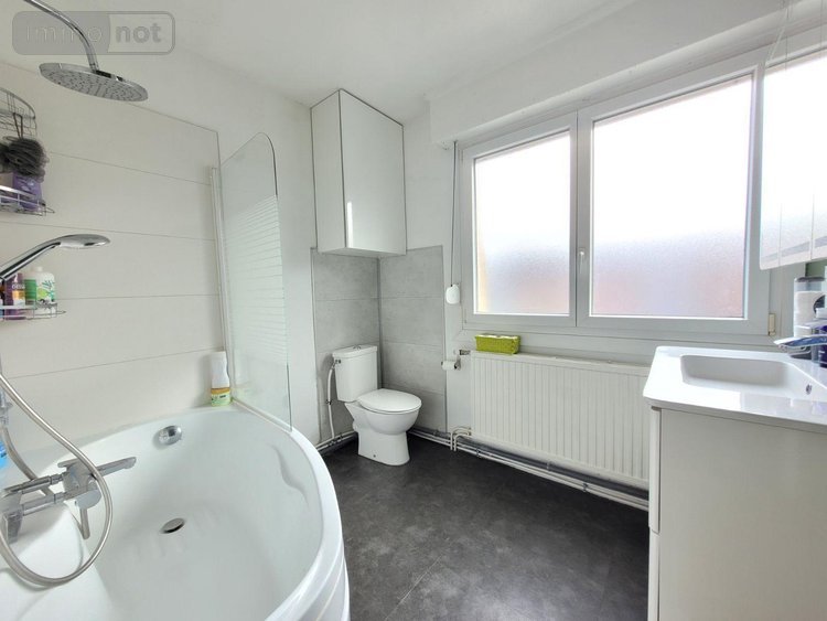 A l'étage (sur dalle béton), un palier desservant 3 belles chambres (14.4 - 14.5 et 10.5m²), Une salle de bain avec baignoire et WC.