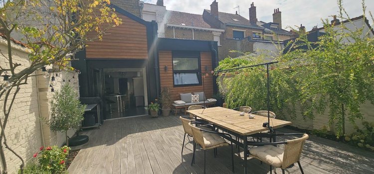 (Emplacement idéal, Malo proche DK) Excellent état, déco soignée alliant le cachet de l'ancien et le contemporain, extension récente avec puits de lumière, jolie façade avec bow-window, coup de coeur assuré !