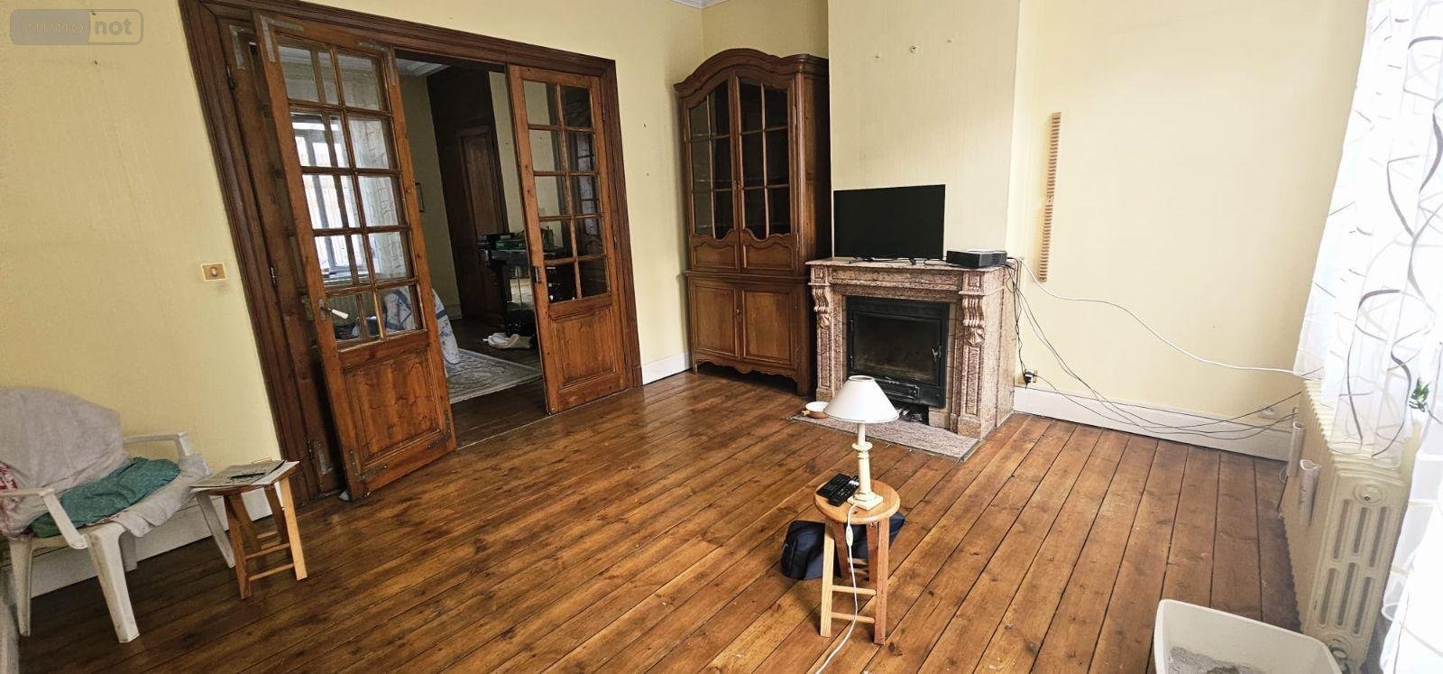 RDC : Entrée + dégagement avec ses beaux carreaux de ciment + placard (15 m²) - Salon-séjour avec parquets anciens (35,40 m²) - Cuisine équipée ouverte sur son coin repas en extension véranda (20,50 m²)