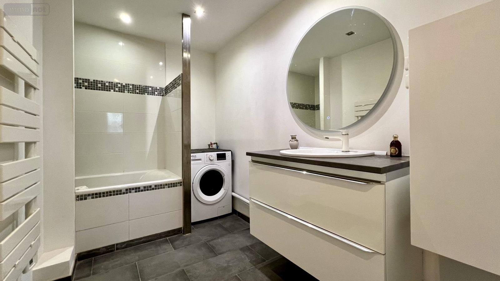 Une salle de bain complète le rez-de-chaussée.