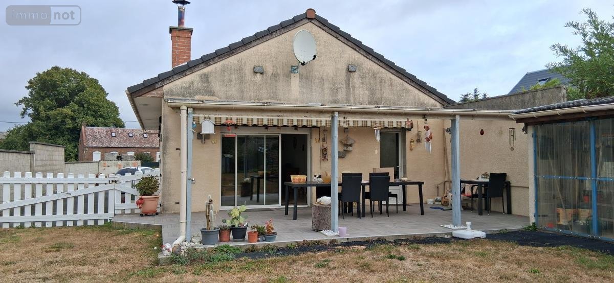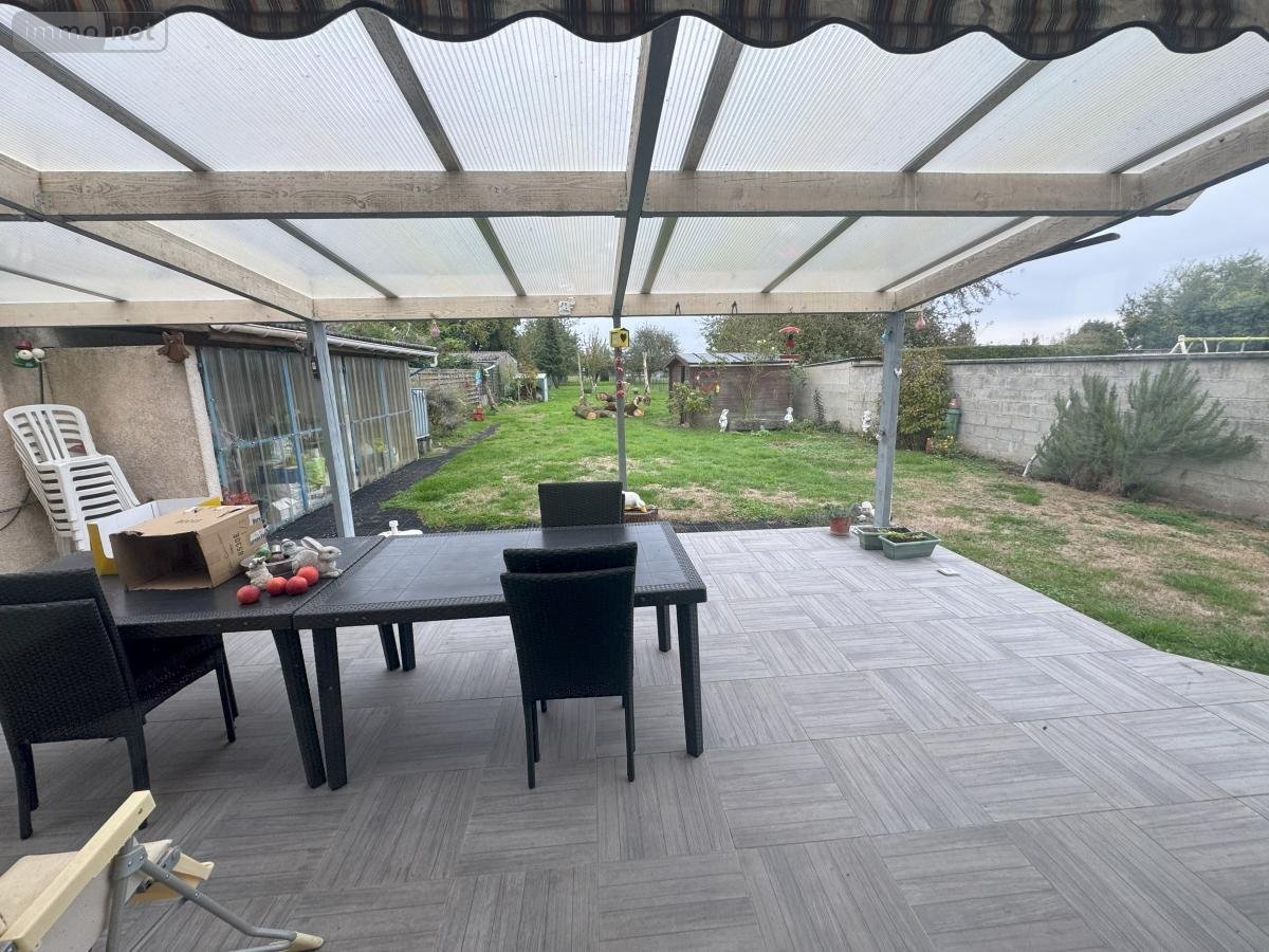 Plain-pied construit en 2005 de 77 m² habitables comprenant salon-salle à manger avec poële à bois, cuisine, salle de douche, wc, 2 chambres, débarras, terrasse et pergola ;