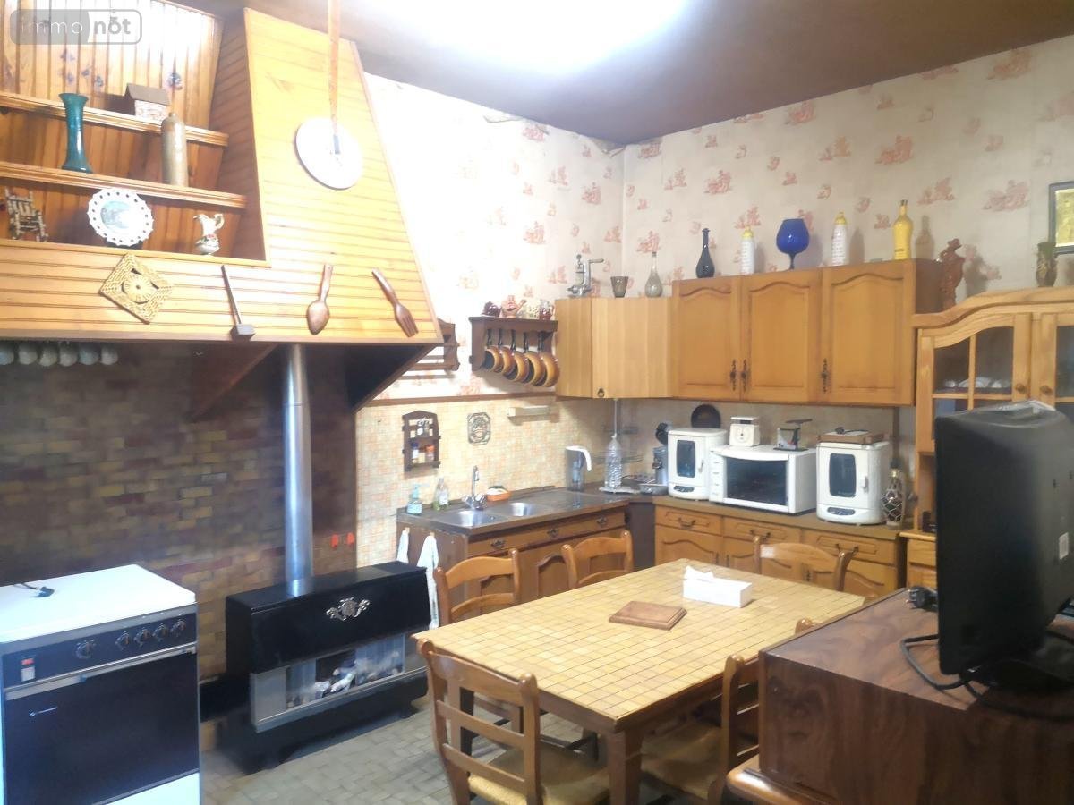 Entrée centrale, cuisine, séjour avec cheminé feu de bois ;