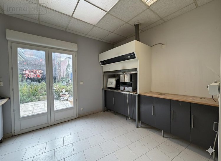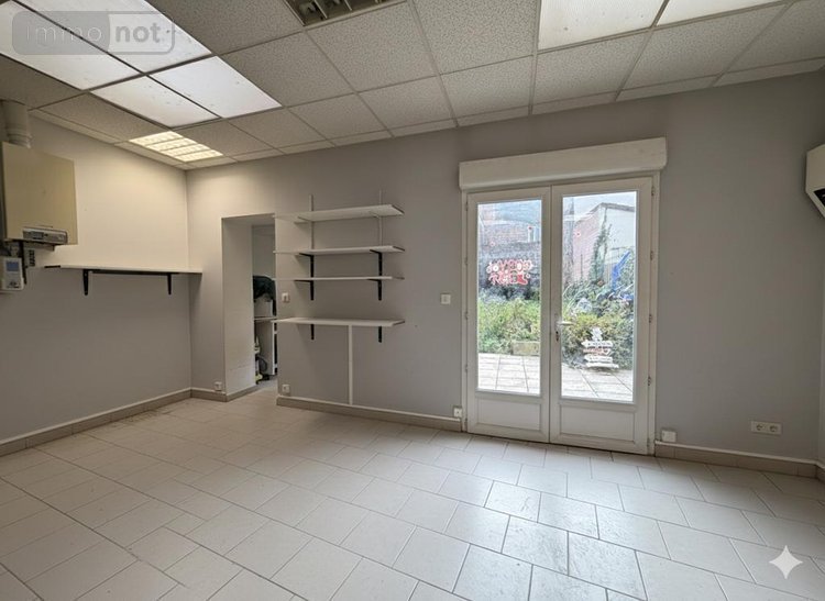 Un ancien local professionnel de 93m² avec sanitaire et cuisine, wc transformable en habitation et accès au jardin.