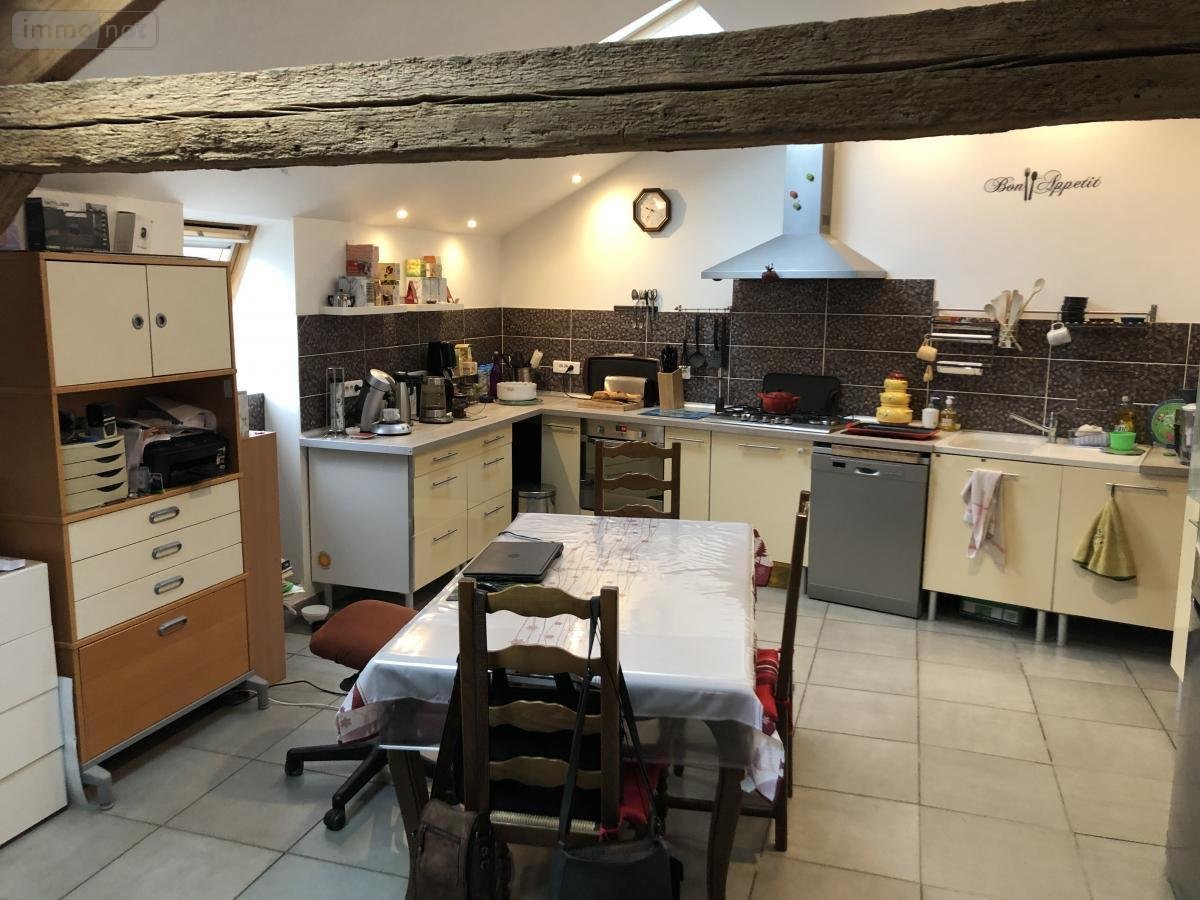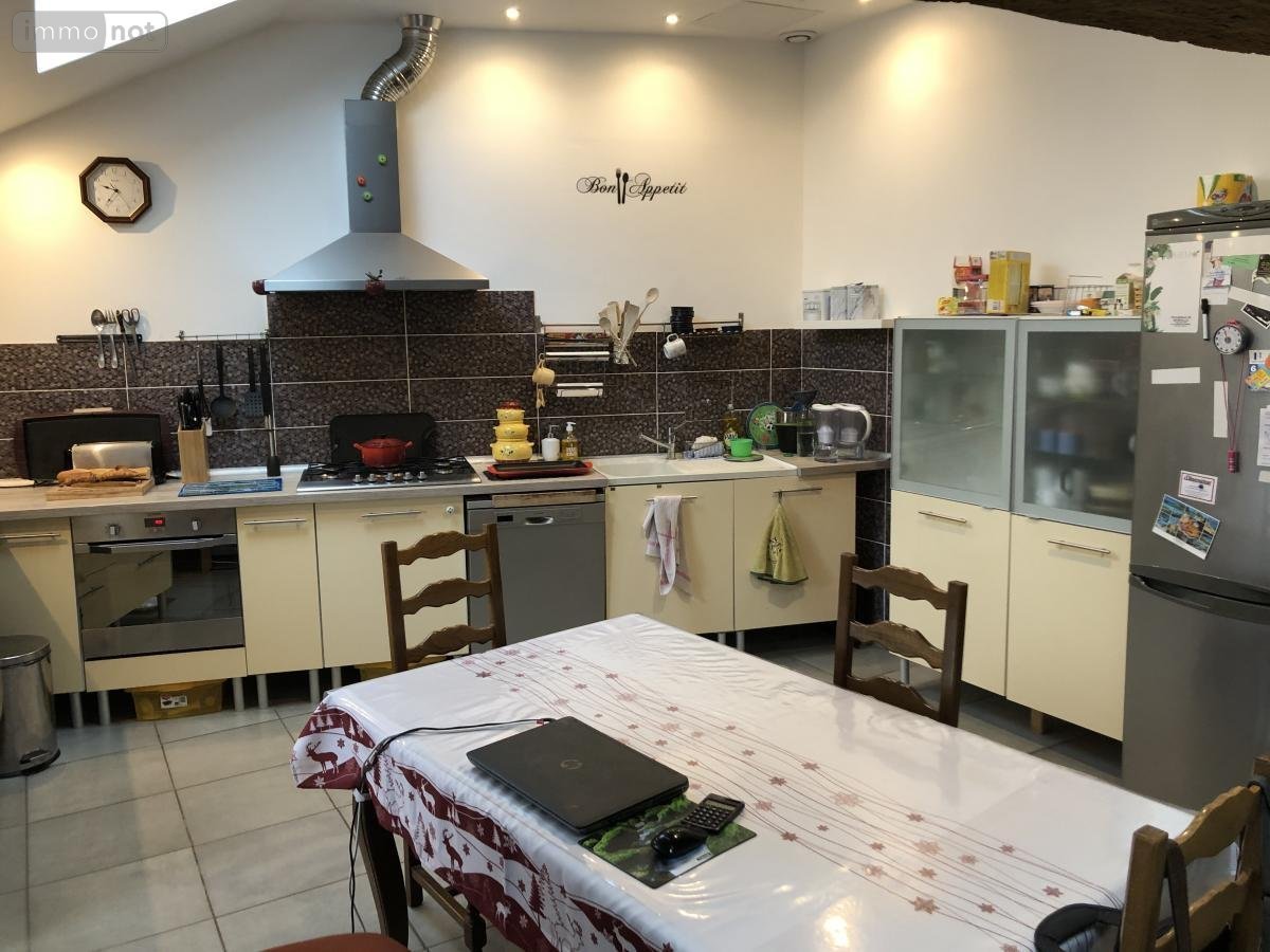- à l'étage : un palier, une cuisine équipée ouverte sur séjour, une chambre avec dressing, une salle de bains avec baignoire douche, un wc;