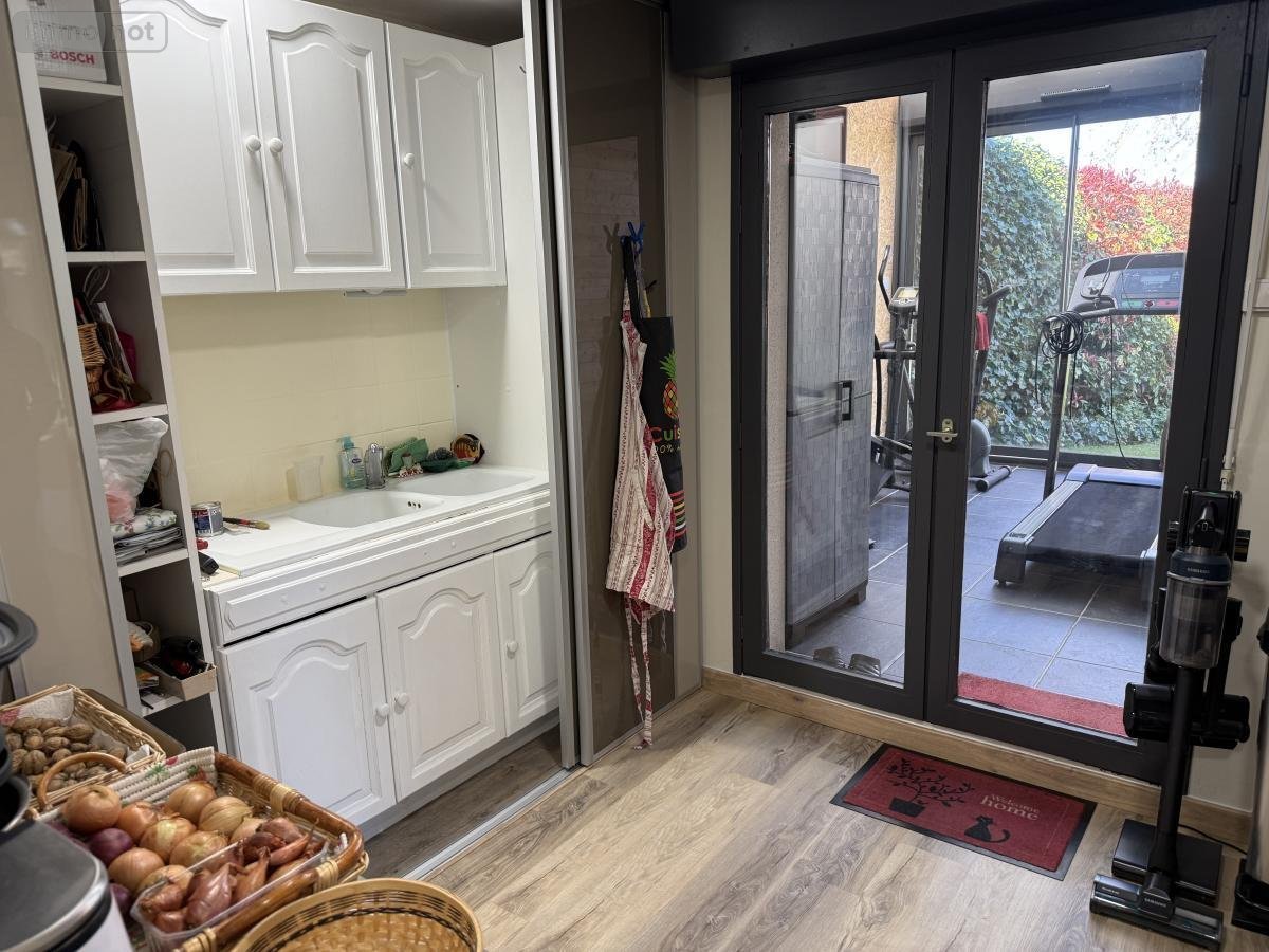 La cuisine équipée, fonctionnelle, s'accompagne d'espaces annexes appréciables au quotidien.