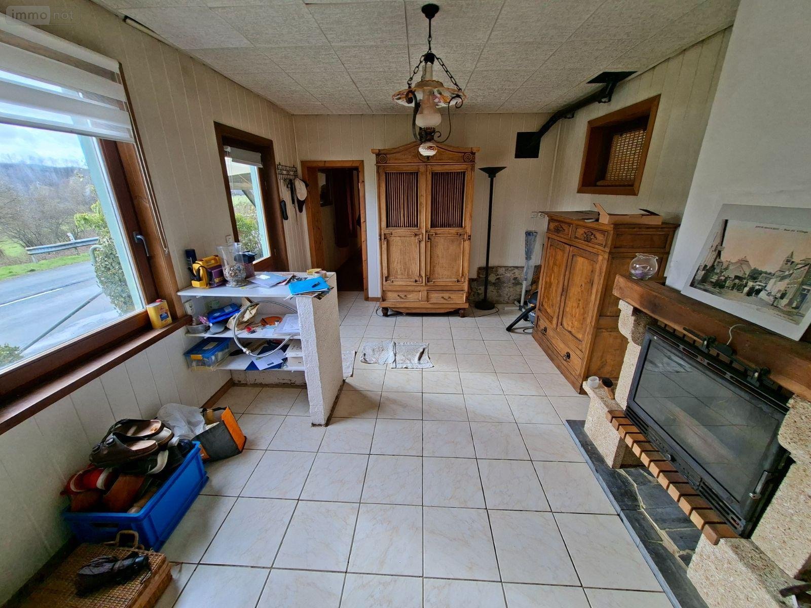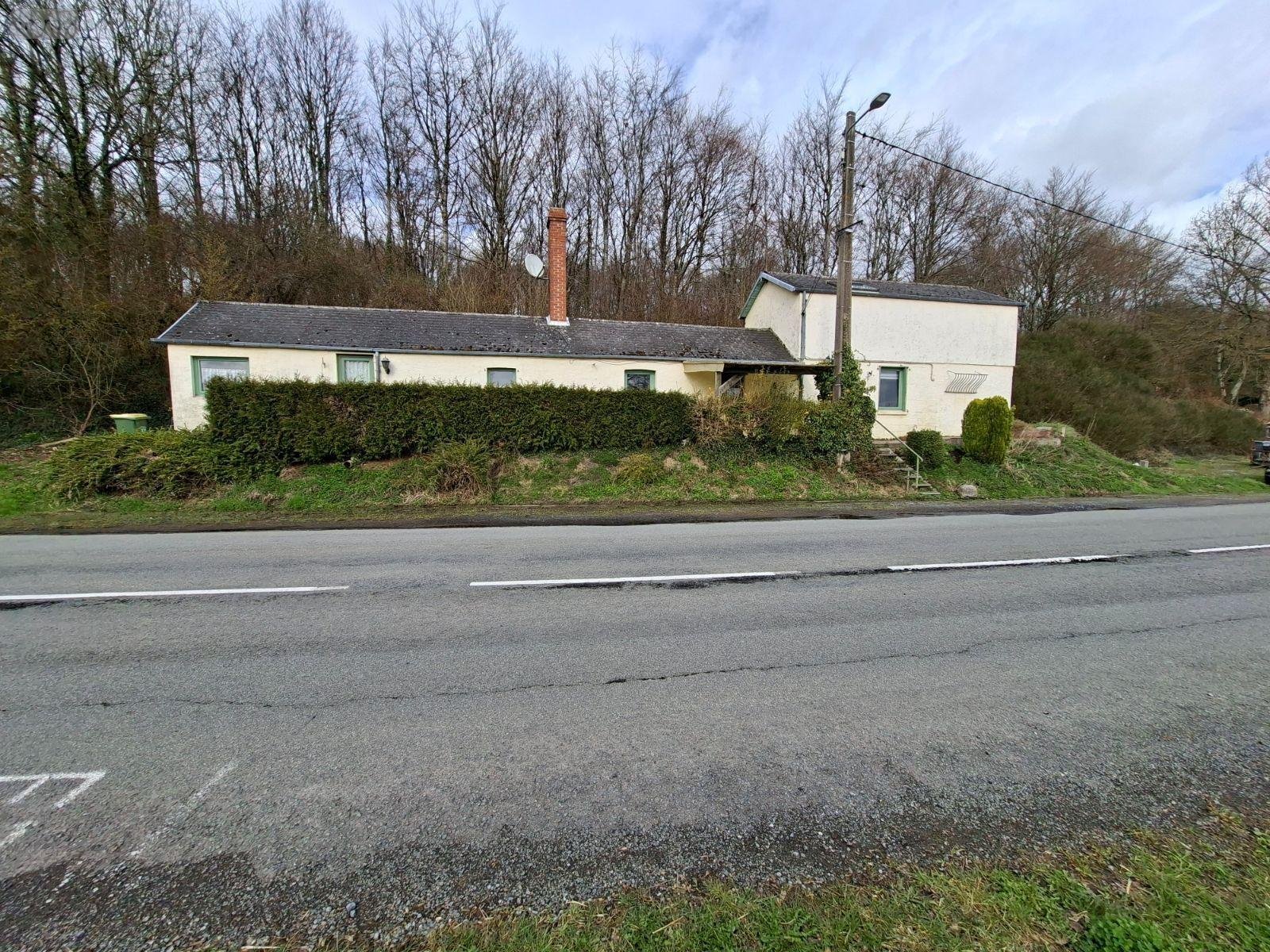 Maison de 112 m2 comprenant au rez-de-chaussée : entrée-bureau, séjour, salon, cuisine, une pièce possibilité chambre, salle d'eau, à l'étage une chambre. Cour et jardin. Terrain de près de 1800 m2 séparé par la route.