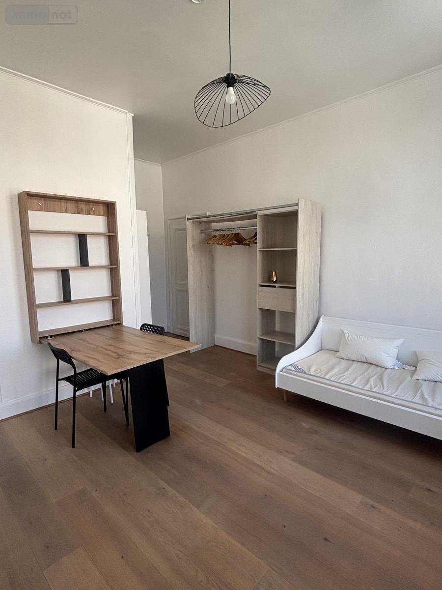 Studio meublé de 22m², séjour , table, chaises, Canapé lit, vaisselle à disposition, cuisine équipée d'une plaque de cuisson, micro-onde et d'un réfrigérateur, salle de bains avec WC, double vitrage posé courant avril.