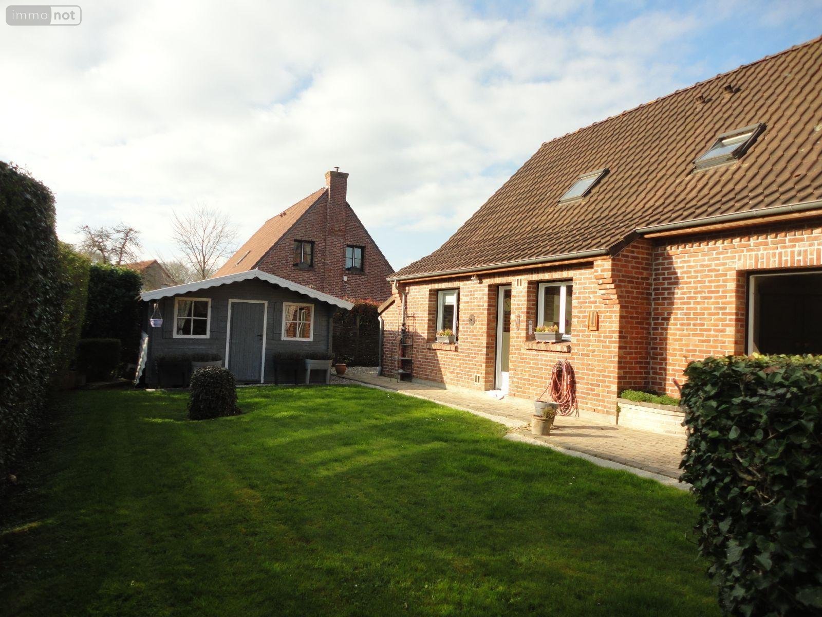 A VENDRE sur NIEPPE dans le NORD- Très belle MAISON INDIVIDUELLE dans secteur recherché sur et avec un terrain de 727 m² orienté SUD-OUEST avec des prestations de qualité- Cette MAISON offre 128 m² de surface habitable- 4 CHAMBRES dont 2 Suites parentales (1 au RDC)- Vous serez séduits par la pièce de vie d'environ 40 m² très lumineuse et à la déco soignée, dotée d'une cheminée feu de bois avec un insert Godin- Cuisine équipée (env 4 ans)- Garage 25 m²- Jardin paysagé- Pas de vis à vis