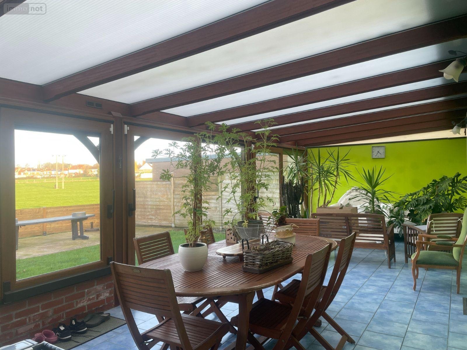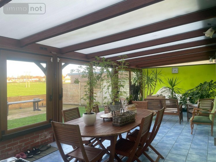 A VENDRE A BAILLEUL dans le Nord (59) : MAISON DE PLAIN PIED INDIVIDUELLE EN LOTISSEMENT EN IMPASSE AVEC VERANDA (31m²), GARAGE (15 m²), TERRASSE, ABRI JARDIN, JARDIN ET STATIONNEMENT - TOUT CONFORT - Surface cadastrale totale : 00ha 4a04ca - Exposition Nord-Est - Surface habitable : 116m² - 5 pièces avec la véranda. Comprenant : REZ DE CHAUSSEE : Entrée, W.C., Salon/Séjour, Cuisine meublée et équipée, Salle d'eau et Dégagement desservant les 3 Chambres.