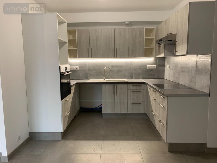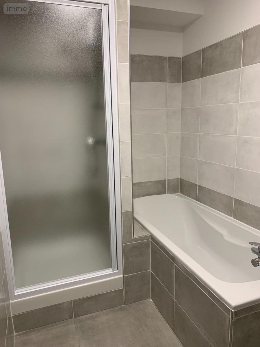 Hall d'entrée (avec placards), salon séjour ouvert sur cuisine meublée et équipée (hotte aspirante, plaque de cuisson et four), deux chambres avec chacune placards (9.65 m² et 9.21 m²), salle de bains (lavabo, douche et baignoire) et WC.