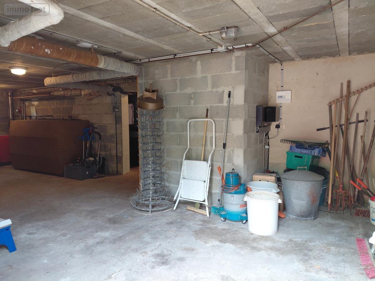 Sous-sol complet : garage, cave, chaufferie (chaudière fuel 2004), arrière-cuisine, chambre avec lavabo, WC, second garage sous la véranda.
