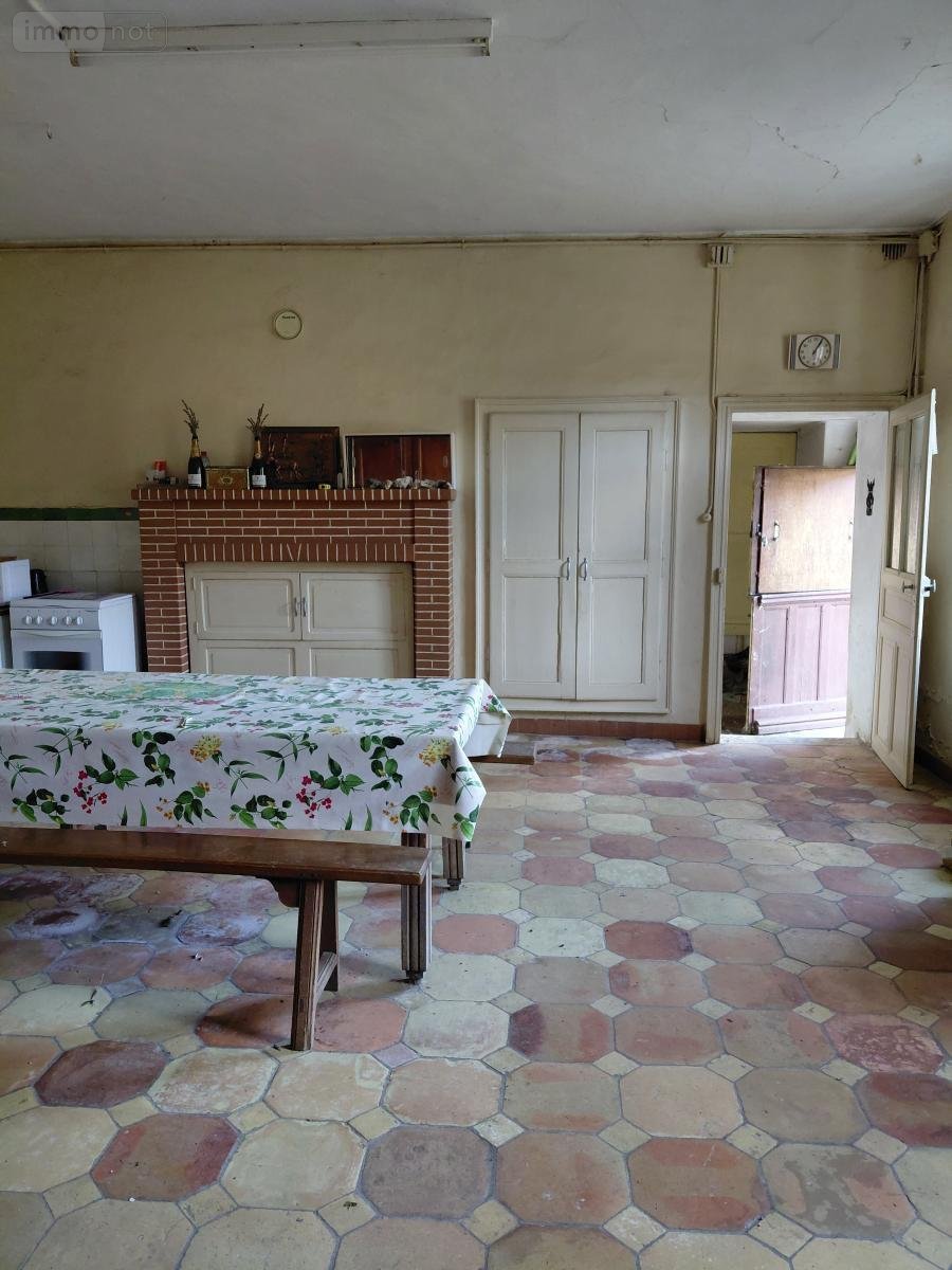 Rez-de-chaussée : entrée, cellier, séjour avec cheminée à foyer ouvert, salle d'eau avec WC, salon ou chambre avec cheminée