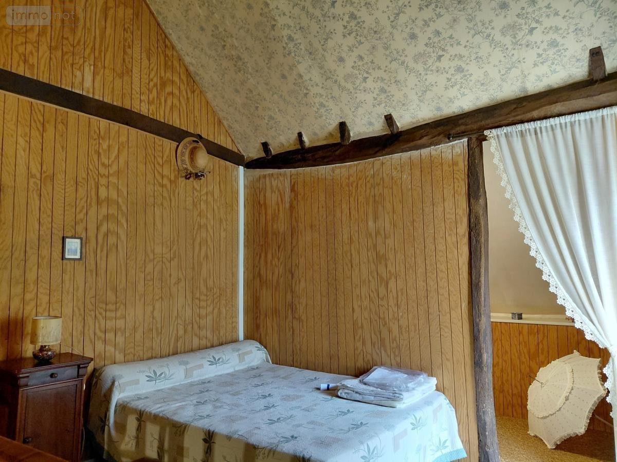 À l'étage : un palier/mezzanine dessert deux chambres supplémentaires, dont une avec lavabo, ainsi qu'une salle de bains et wc.