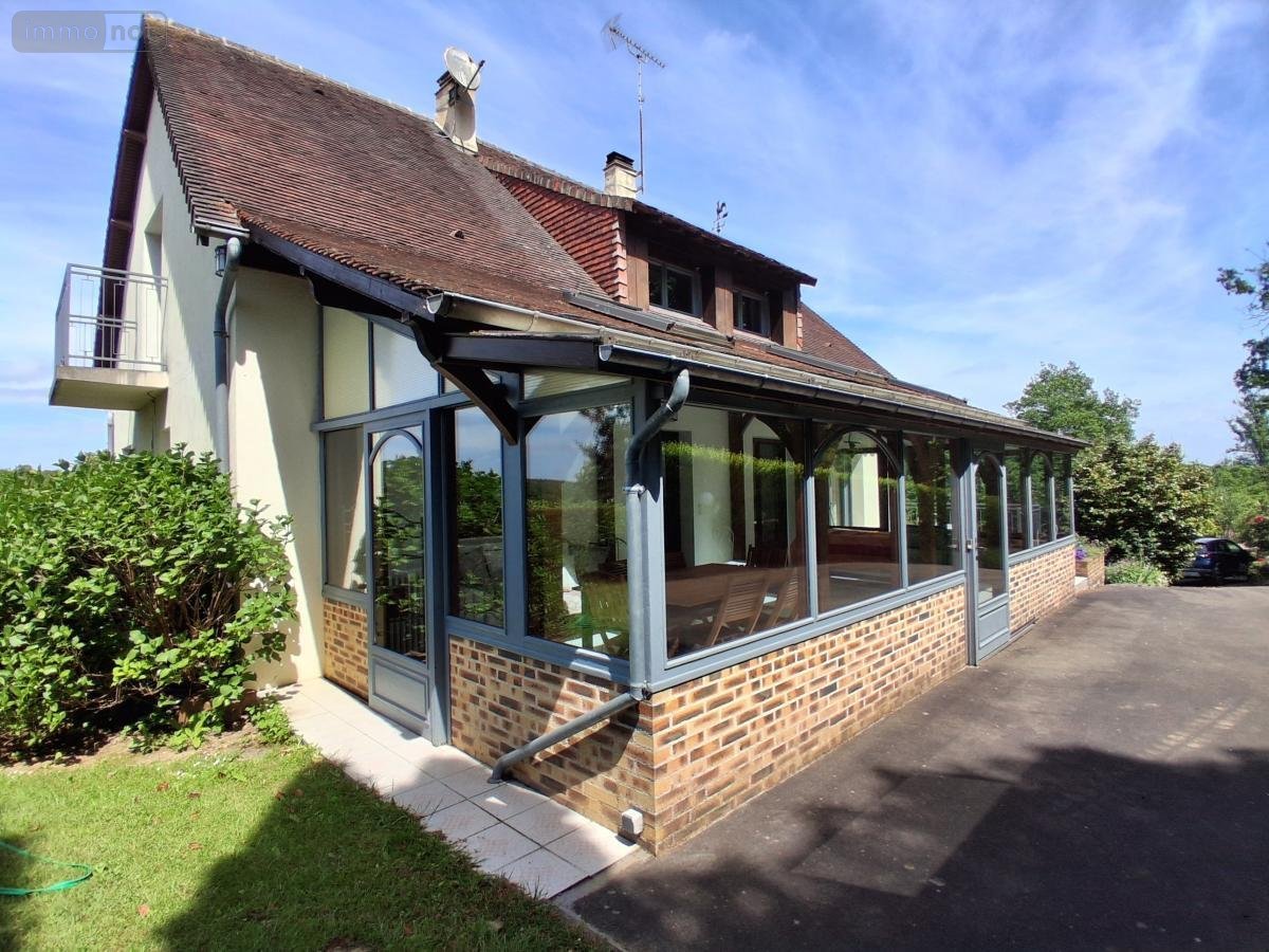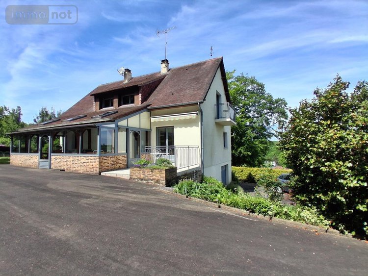 Maison confortable, jolie vue, comprenant, RDC : entrée - véranda chauffée -Pièce de vie : cuisine aménagée-salle à manger-séjour (poële à bois),  chambre avec placard - salle d'eau - WC - débarras - Etage : palier - pièce de rangement - trois chambres chacune avec placard pouvant être aménagé en dressing - salle d'eau avec WC. Sous-Sol divisé en garage, chaufferie, atelier. Parc arboré. L'ensemble pour 1670 m².