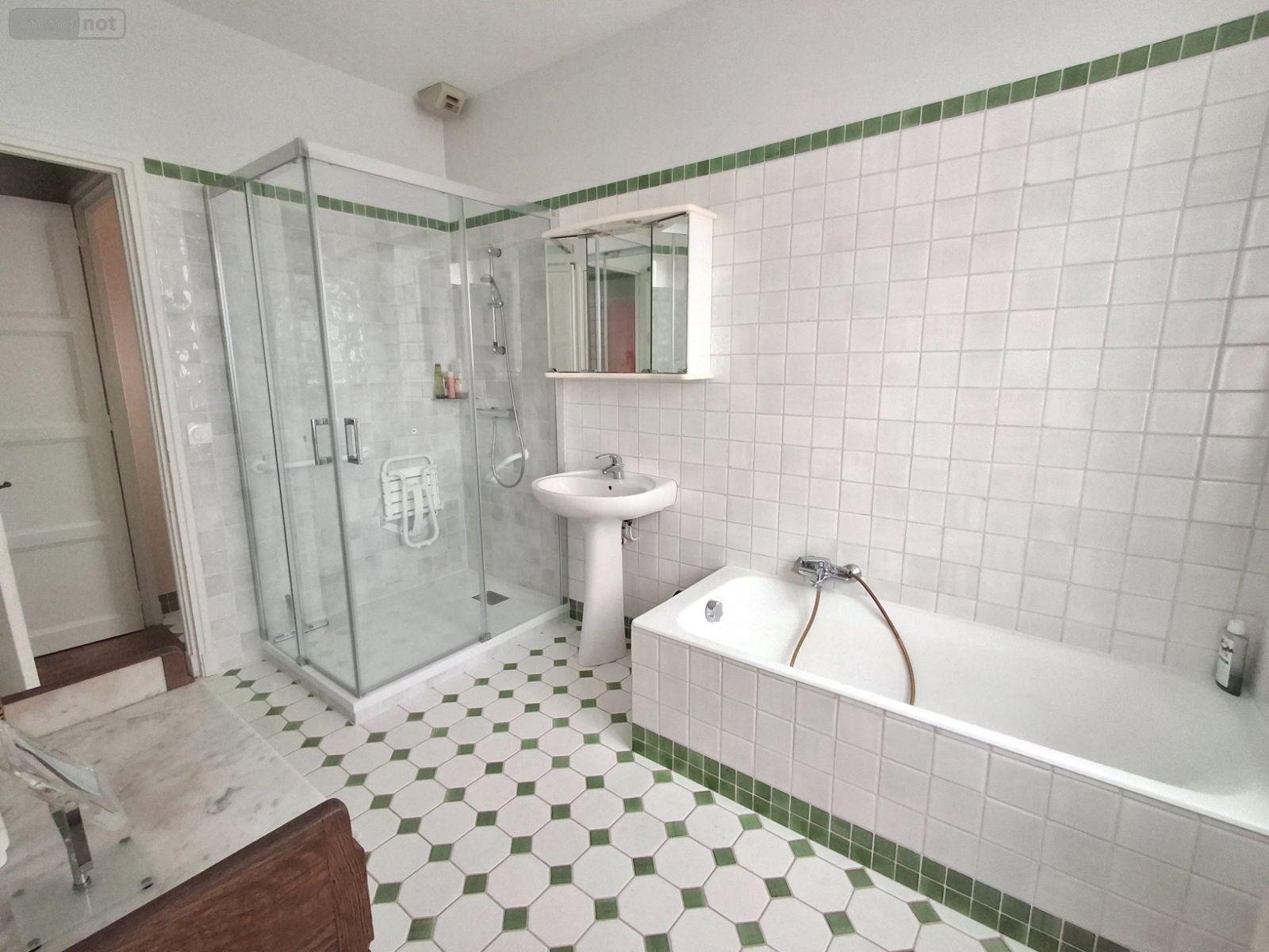 - au premier étage : palier desservant wc, bureau, deux chambres dont une avec un accès direct à la salle de bains pouvant s'accéder aussi depuis le palier ;