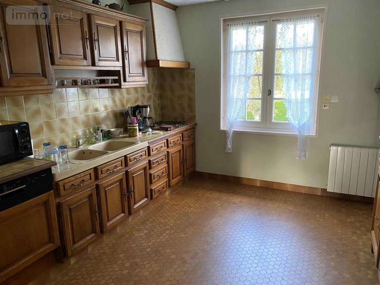 PUTANGES LE LAC 3 mns tous commerces: Pavillon en campagne d'environ 110 m² habitable sur 8 330 m² de terrain, comprenant au rez-de-chaussée, entrée, couloir, cuisine aménagée, séjour avec cheminée, wc, salle de bains, trois chambres, à l'étage palier, une chambre, grenier, sous sol complet à usage de garage, cave, buanderie, cabanon de jardin, 2 petits bâtiment annexes, chauffage électrique et cheminée, double vitrage, prix 168 200€ honoraires de négociation à la charge du vendeur.