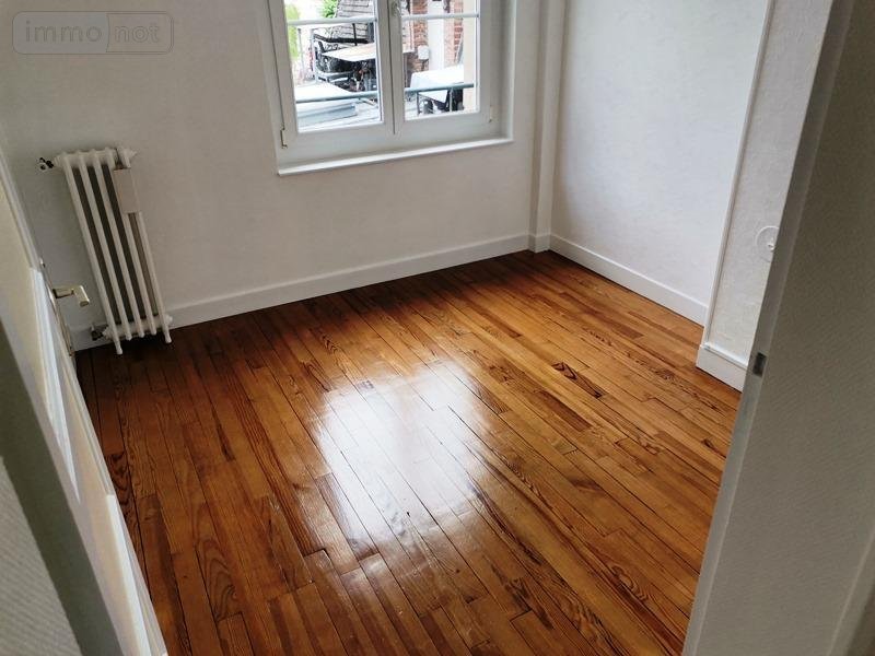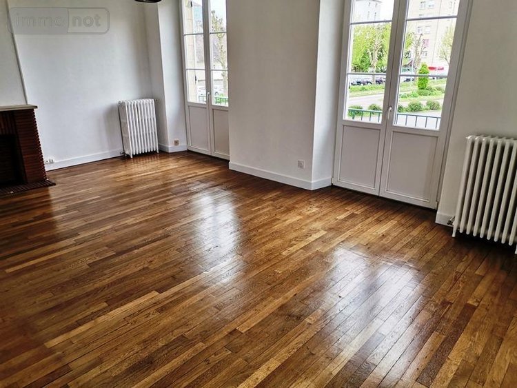 FALAISE: Au pied du château: Appartement d'environ 90 m² situé au 1er étage avec balcon, comprenant entrée-couloir, cuisine aménagée, séjour, trois chambres, salle d'eau, wc, dressing, cave en sous-sol, chauffage individuel gaz de ville, double vitrage, loyer 750 € part de frais de bail 570 €