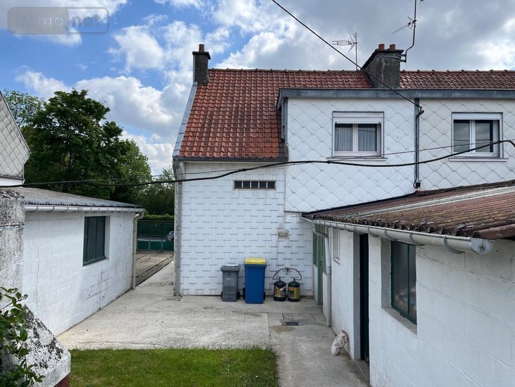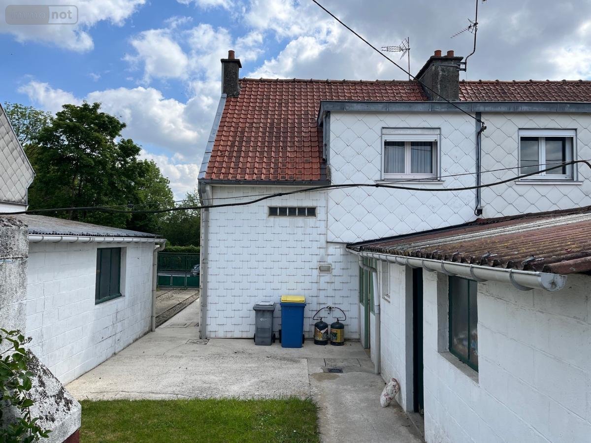 Maison semi-individuelle comprenant au rez-de-chaussée : entrée, salon, cuisine, cellier, salle d'eau, WC. A l'étage : palier, 3 chambres. De plus : cave, dépendances, garage, cour fermée, jardin clos. Le tout sur environ 446 m².