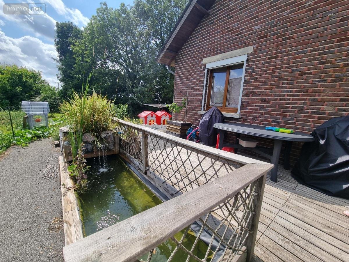Terrasse en bois avec petit bassin, jardin sans vis à vis exposé sud-ouest avec magnifique vue sur la campagne.
