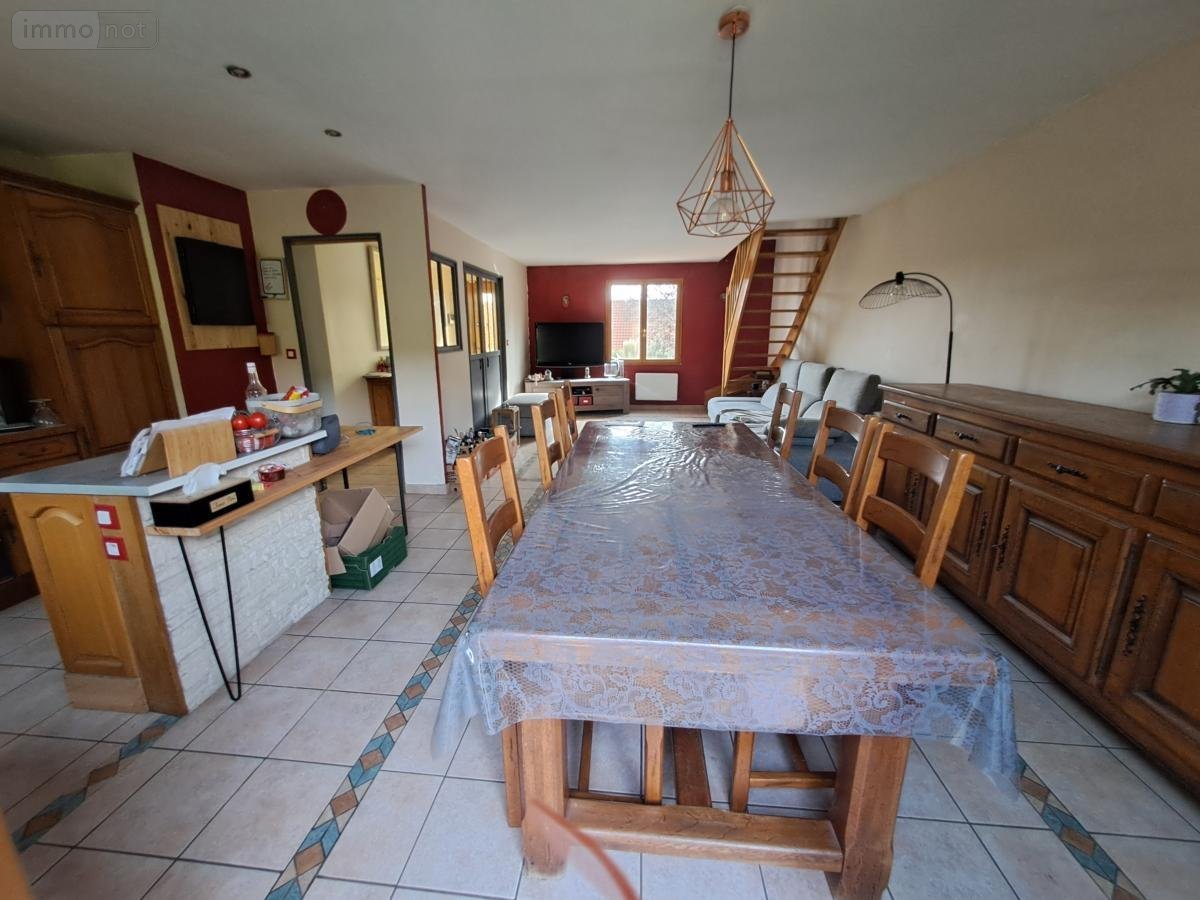 - au rez-de-chaussée : Entrée, séjour-salon avec cuisine équipée, cellier, salle de bains, W.C, trois chambres.