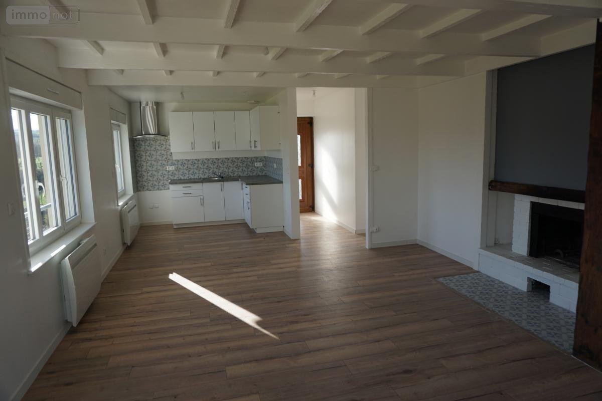 Au 1er étage : hall d'entrée, pièce principale avec coin cuisine meublée donnant sur salon/séjour avec cheminée feu de bois, une salle de bains avec douche et baignoire, trois chambres, un water-closet.