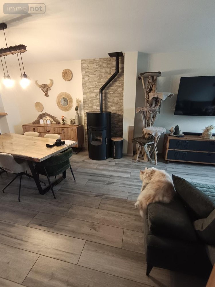 -au rez-de-chaussée : entrée, salon / séjour avec poêle à granulés, cuisine aménagée et équipée, salle d'eau, WC,