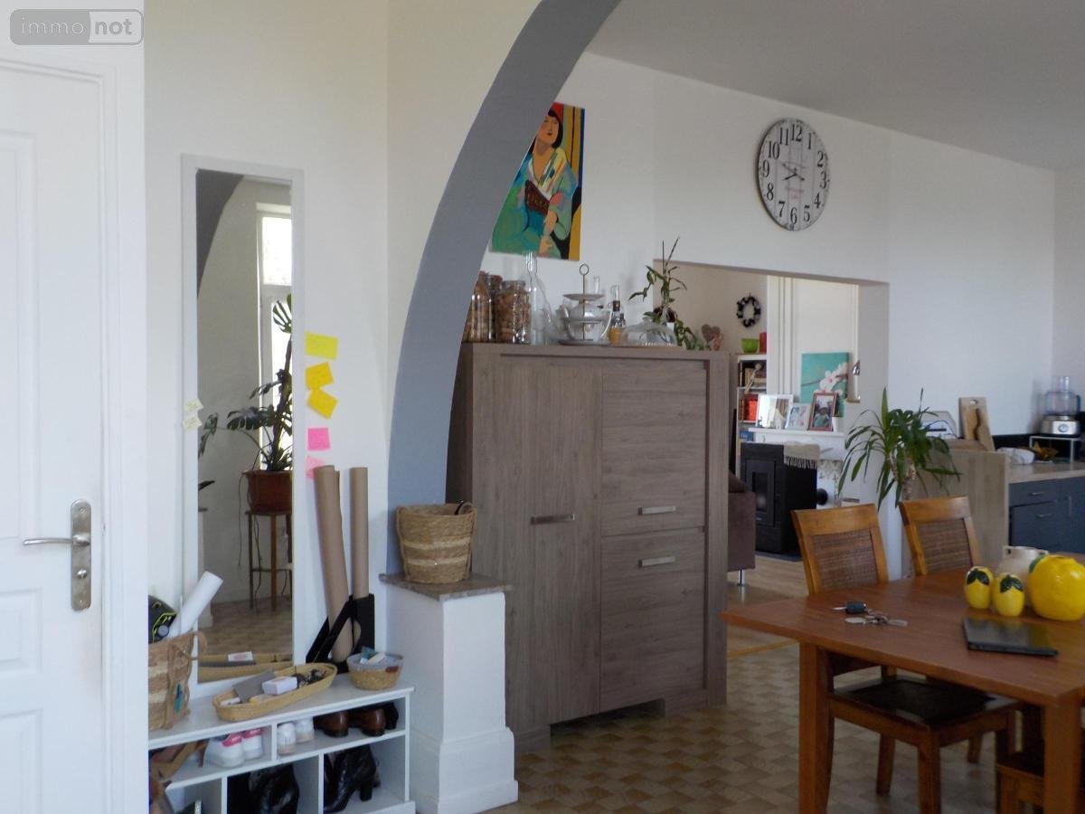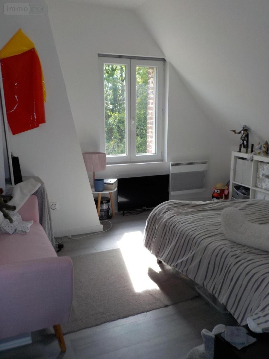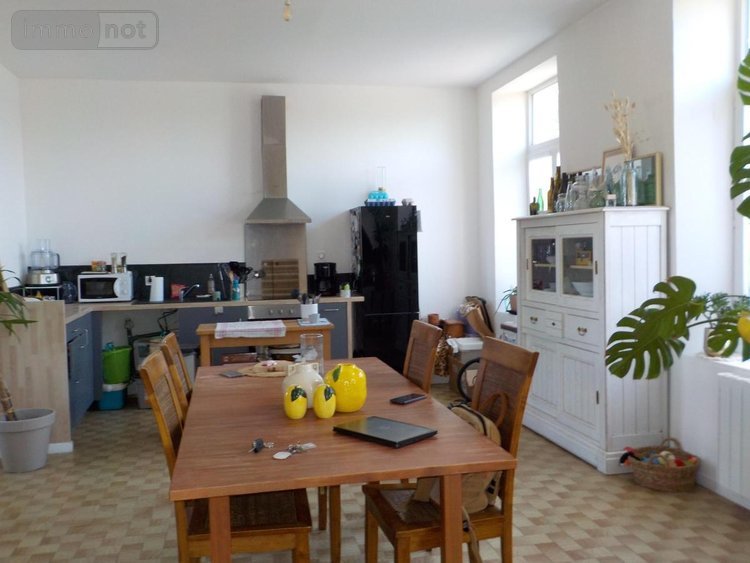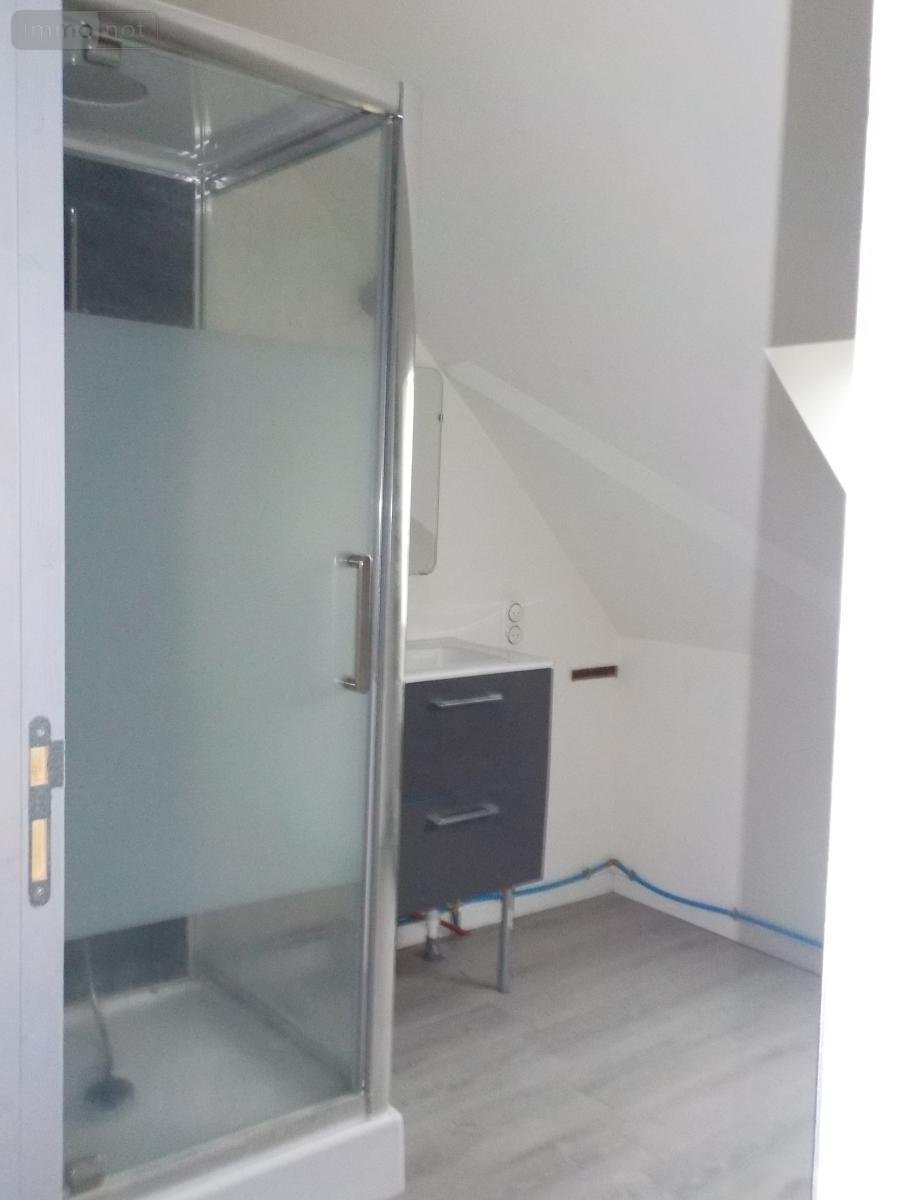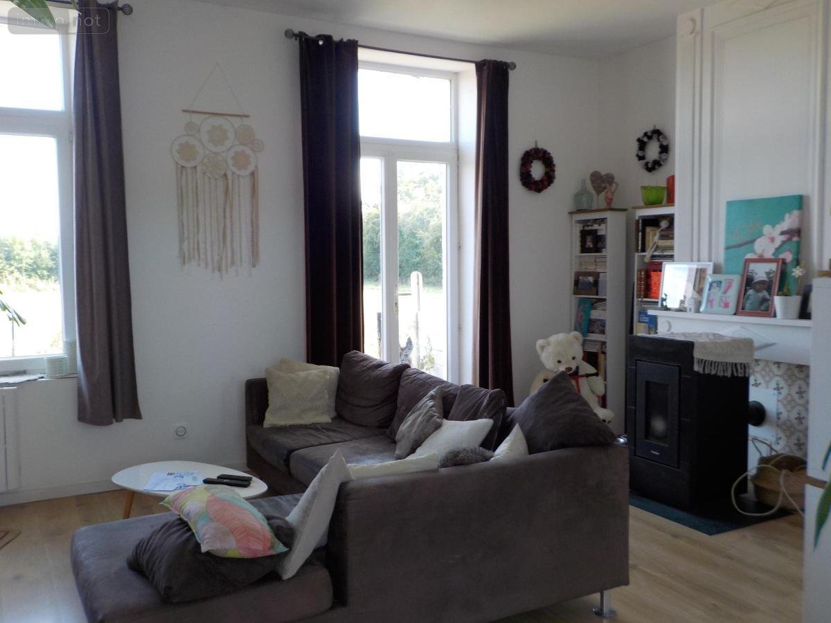 Maison semi-mitoyenne à louer, comprenant : Au rez-de-chaussée : entrée sur pièce principale comprenant une cuisine meublée non équipée, partie salon avec poêle à granules, water-closet, placard. A l'étage : palier, trois chambres, une salle d'eau. Jardin clôturé. Libre de suite.