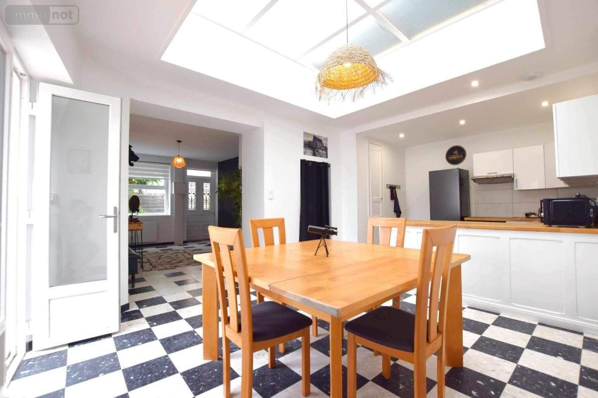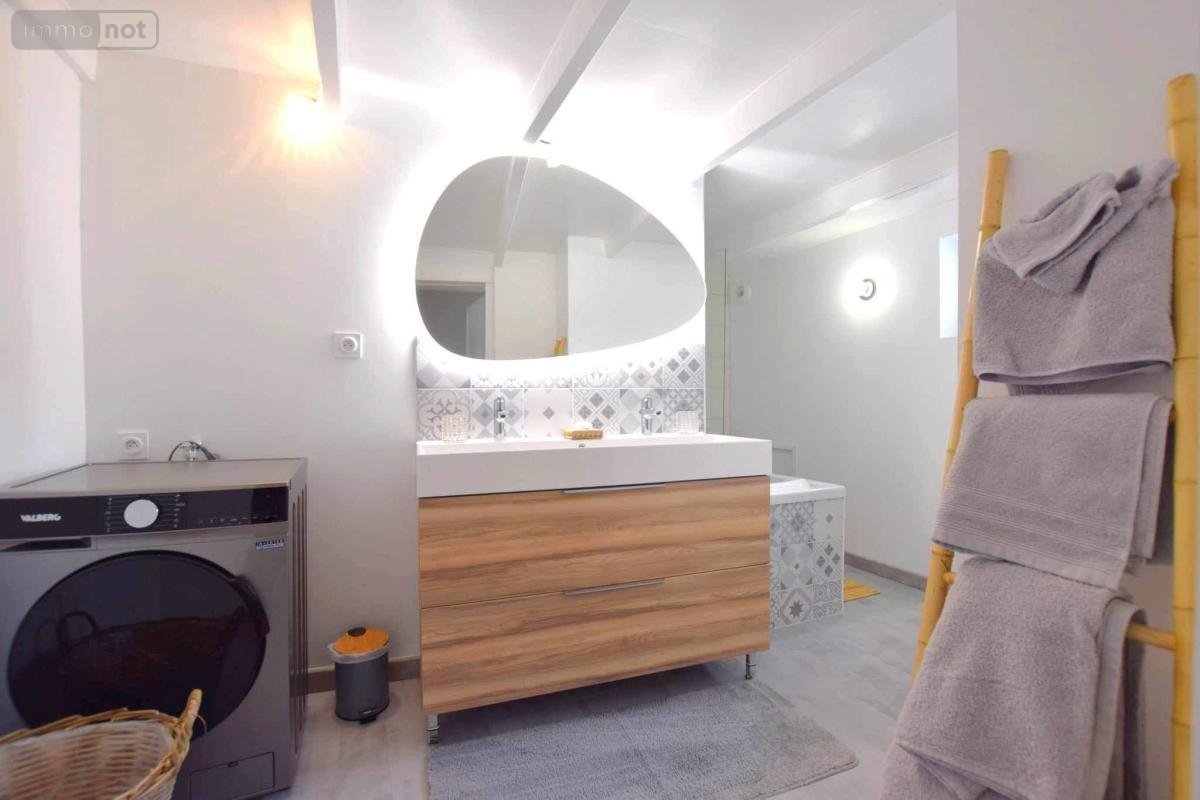 Au rez-de-chaussée : grand hall d'entrée, cuisine aménagée et équipée (four, plaque induction, réfrigérateur, micro-ondes, lave-vaisselle, hotte aspirante) avec un espace repas. Une terrasse.