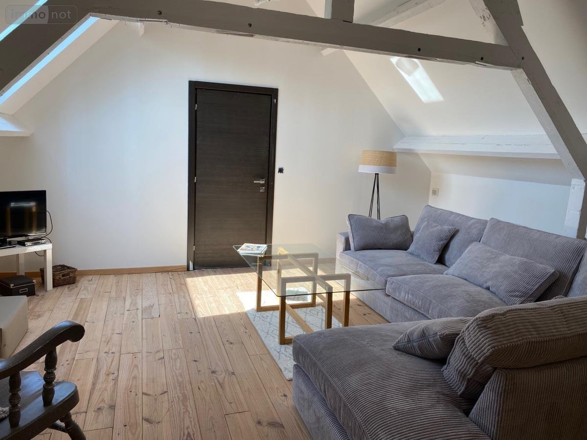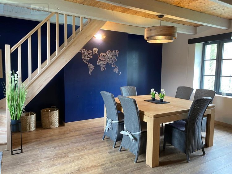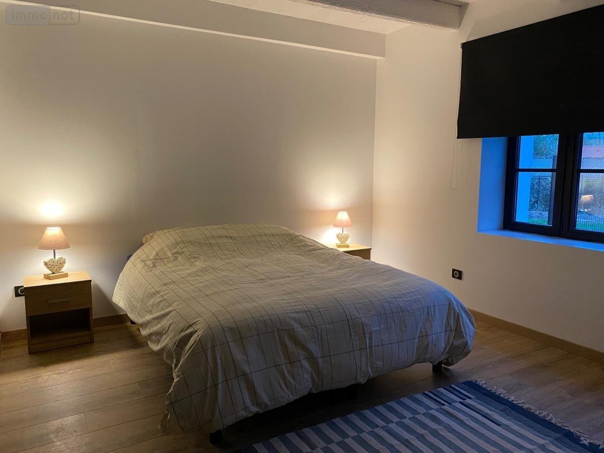 A louer, une maison semi-mitoyenne à la campagne comprenant : hall d'entrée, pièce principale avec cuisine aménagée et équipée, une chambre, une salle de bain. A l'étage : un grand palier, une chambre, un salon, un water-closet.