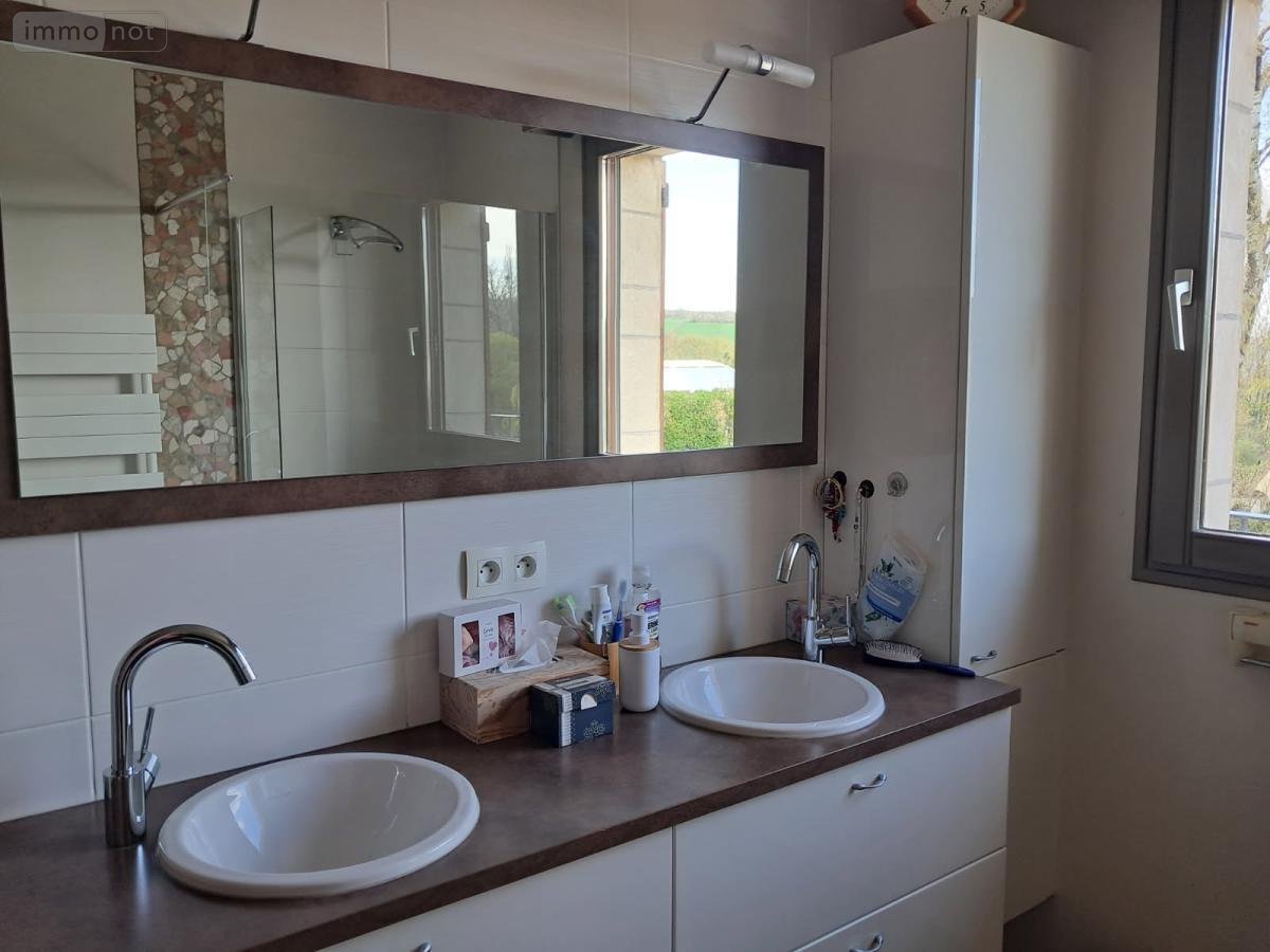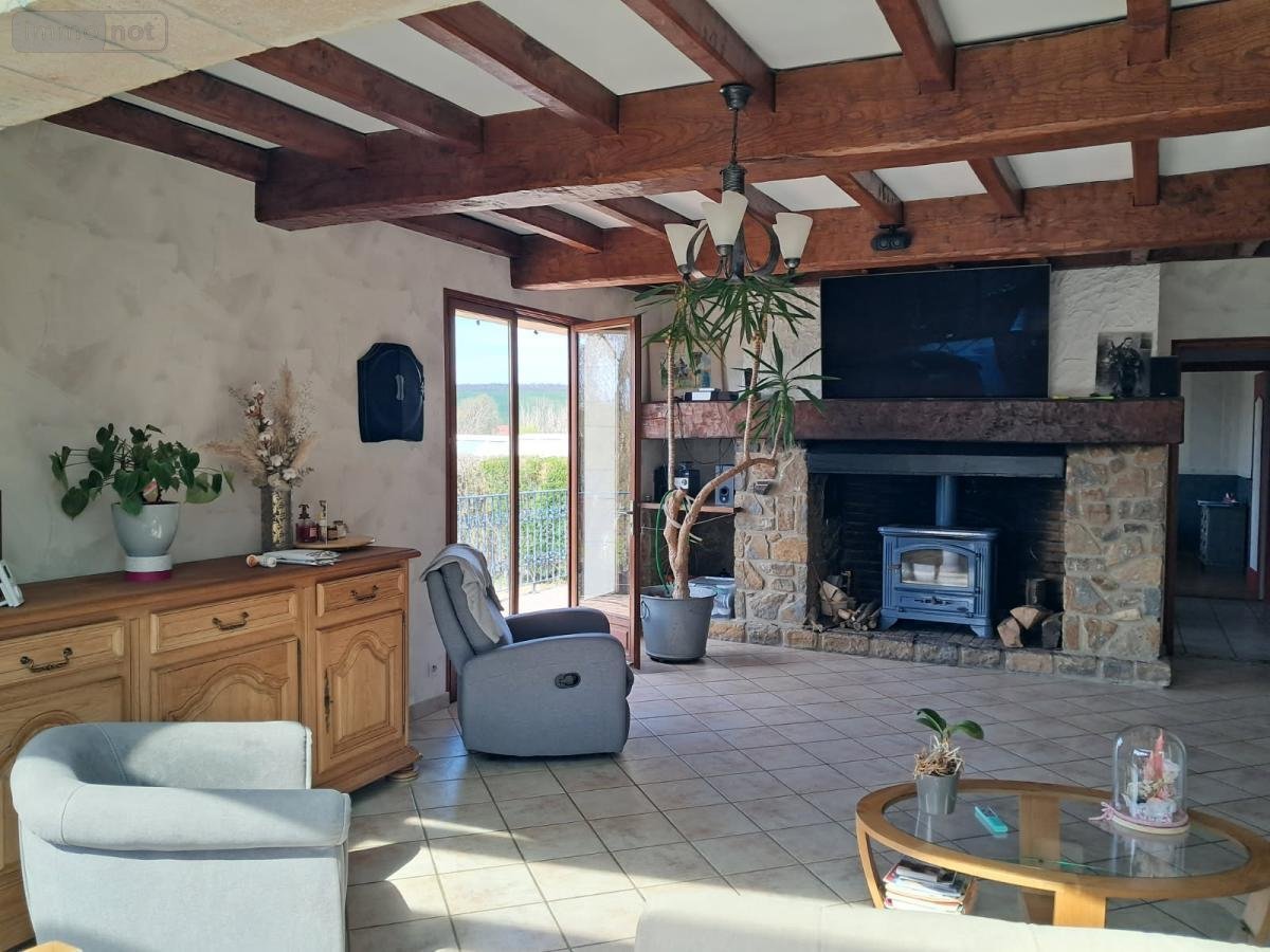 Le rez-de-chaussée se compose d'un hall d'entrée, avec un accès en sous sol , cuisine équipée ouverte sur une pièce véranda et un salon avec cheminée feu de bois tubée, une vue dégagée sur un agréable jardin , large balcon, un couloir dessert trois chambres, placards, un cabinet de toilettes (Meuble avec double vasque, miroir, douche, branchement machine à laver) WC suspendu