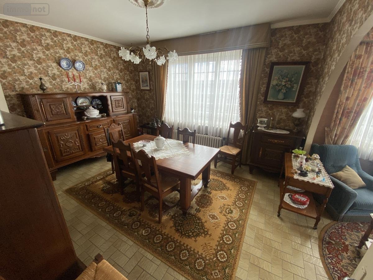 Maison individuelle à rénover comprenant au rez-de-chaussée, entrée hall, W.C, salle à manger, cuisine, séjour salon, une chambre, à l'étage, salle de bains, trois chambres dont une en enfilade, grenier aménageable ; Cave ; Garage ; Jardin.