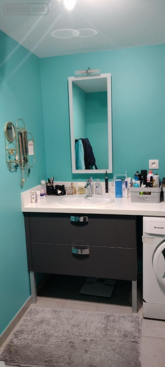 une entrée, dégagement avec placard (ballon d'eau chaude incorporé), un salon séjour donnant accès sur le balcon (5.5 m²), un espace cuisine aménagé, une chambre avec dressing, une chambre avec placard, un WC, une salle d'eau (douche, plan vasque, emplacement lave-linge et sèche linge) ; Un garage.