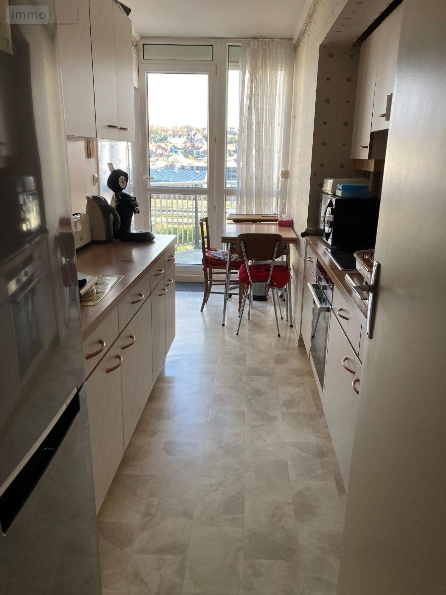 BOULOGNE SUR MER, Résidence Les Morins, un appartement avec balcon situé au septième étage avec ascenseur, comprenant: entrée, WC, salle à manger, salon, deux chambres, salle d'eau, salle de bains, cuisine, cellier, débarras. Garage. Taxe foncière 1671 euros. Charges de copropriété: 803,35 € par trimestre.