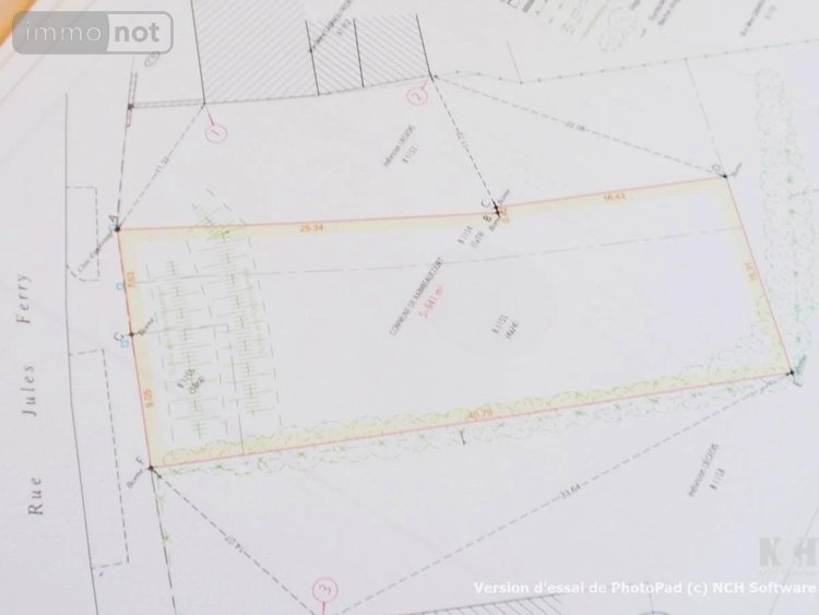 un terrain constructible de 641 m² avec une façade de 16,68 m, exposé Sud-Est.