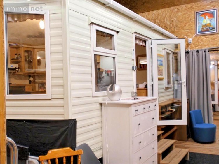 un hangar de 165 m² avec murs isole avec OSB et clim réversible, dans lequel se trouve un mobil home de 37 m² de 2012.