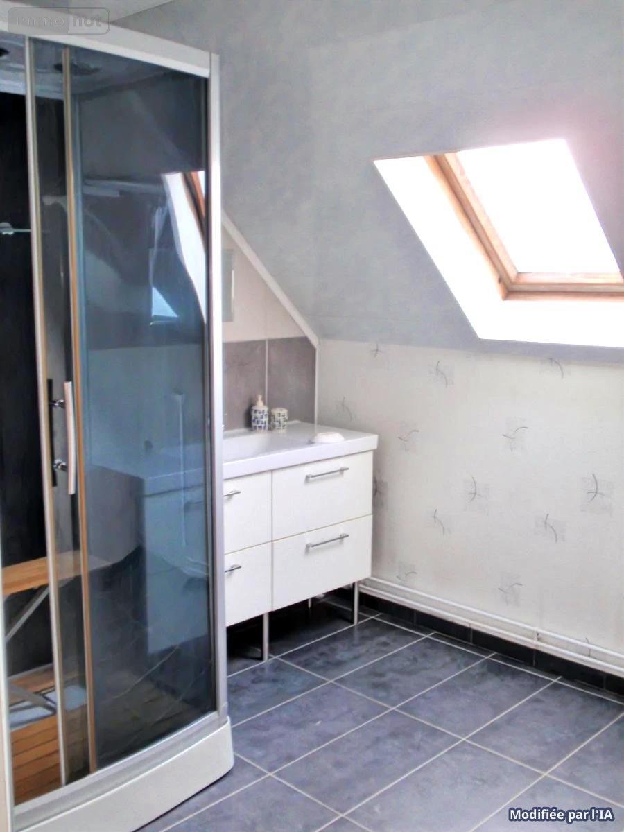 entrée, cuisine meublée, séjour-salon, wc. Etage : 3 chambres, salle de bains, lingerie.