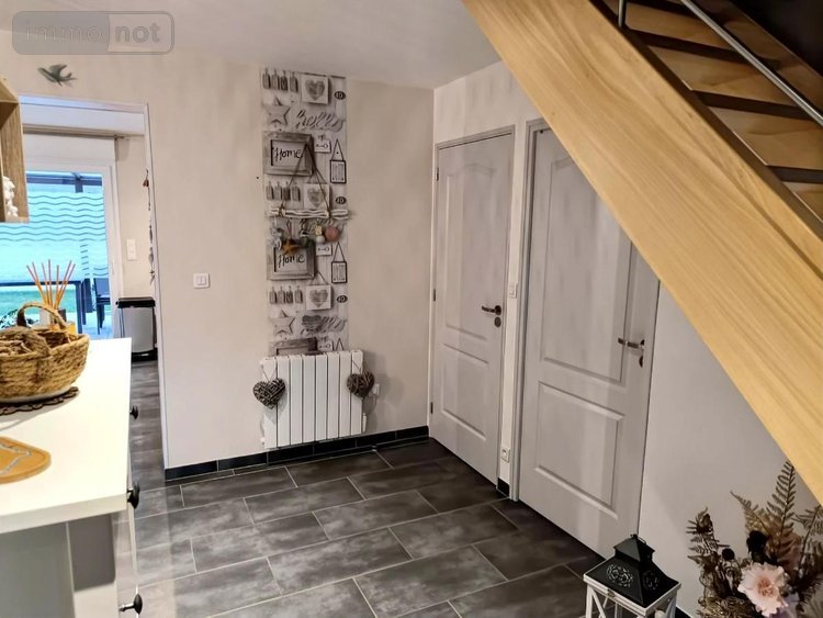 Elle se compose au rez-de-chaussée d'un hall d'entrée accueillant, d'un séjour lumineux avec cuisine ouverte et entièrement équipée, une salle de bain, un WC et un accès au garage. À l'étage, un palier dessert quatre chambres, dont une avec dressing, et la possibilité d'ajouter une salle de bain supplémentaire.