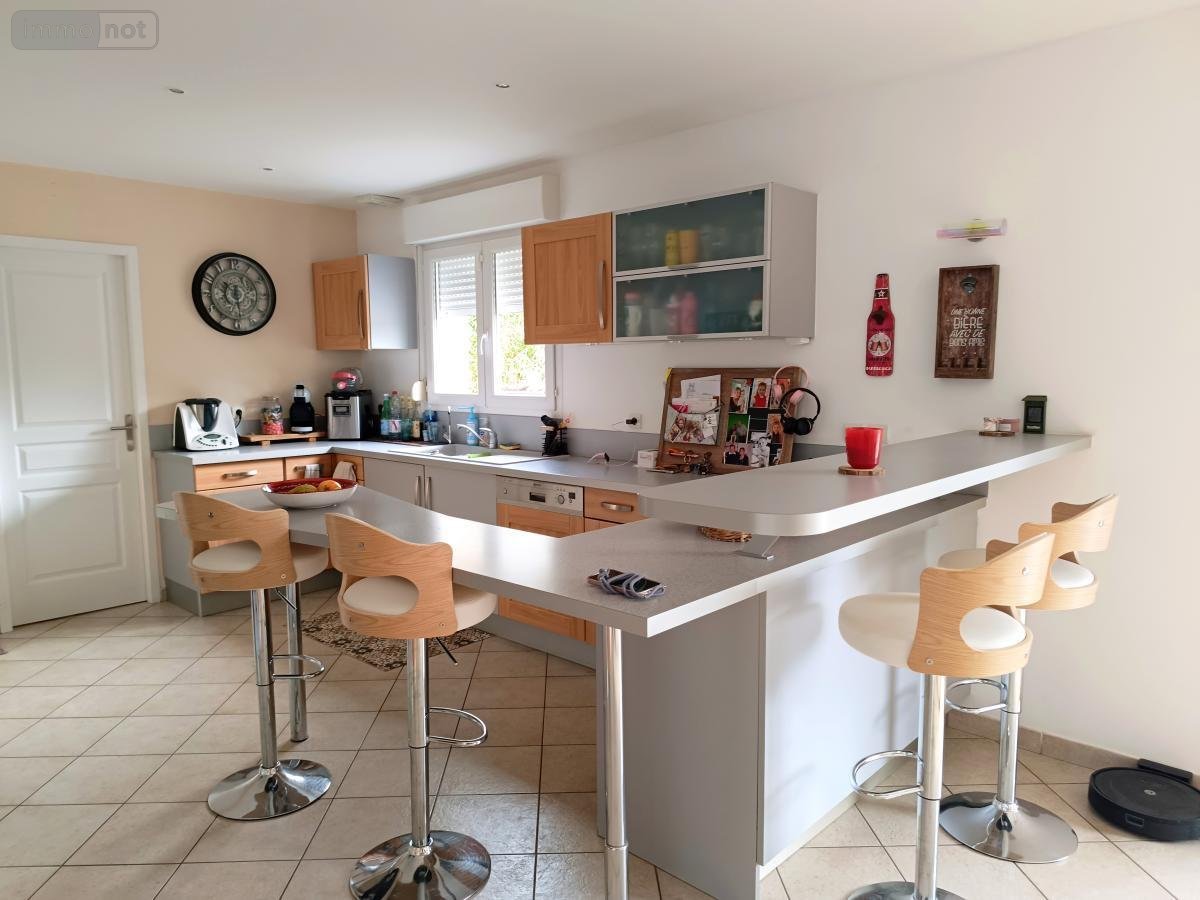 Dès l'entrée, vous apprécierez un hall accueillant menant à un séjour spacieux et lumineux, agrémenté d'une cheminée, et ouvert sur une cuisine moderne et entièrement équipée. Une arrière-cuisine, un cellier et un WC indépendant complètent le rez-de-chaussée.