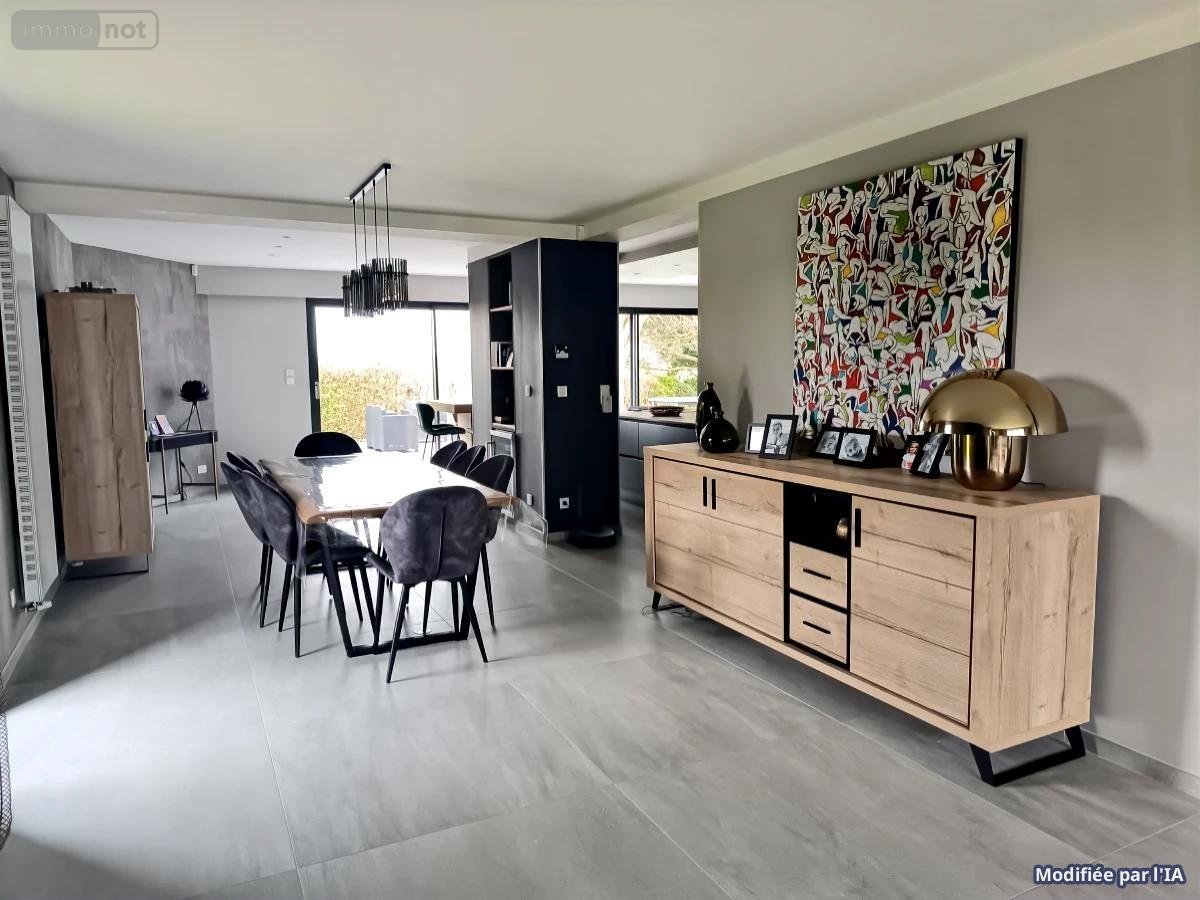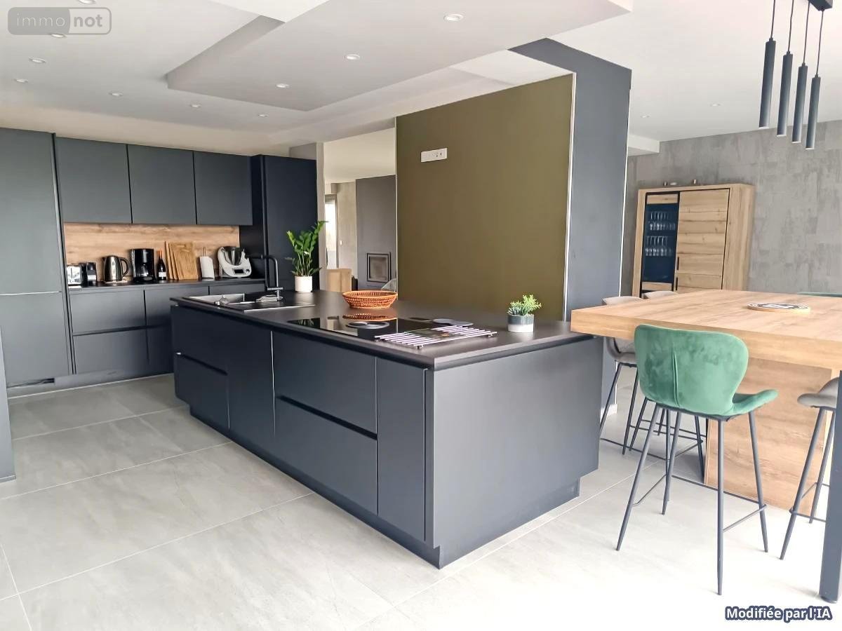 Le coeur de la maison se compose d'un spacieux salon-séjour ouvert sur une cuisine moderne, entièrement équipée avec des matériaux de qualité et dotée d'un îlot central convivial. Cet espace de vie, baigné de lumière grâce à ses nombreuses ouvertures sur l'extérieur, invite à la détente et aux moments de partage.