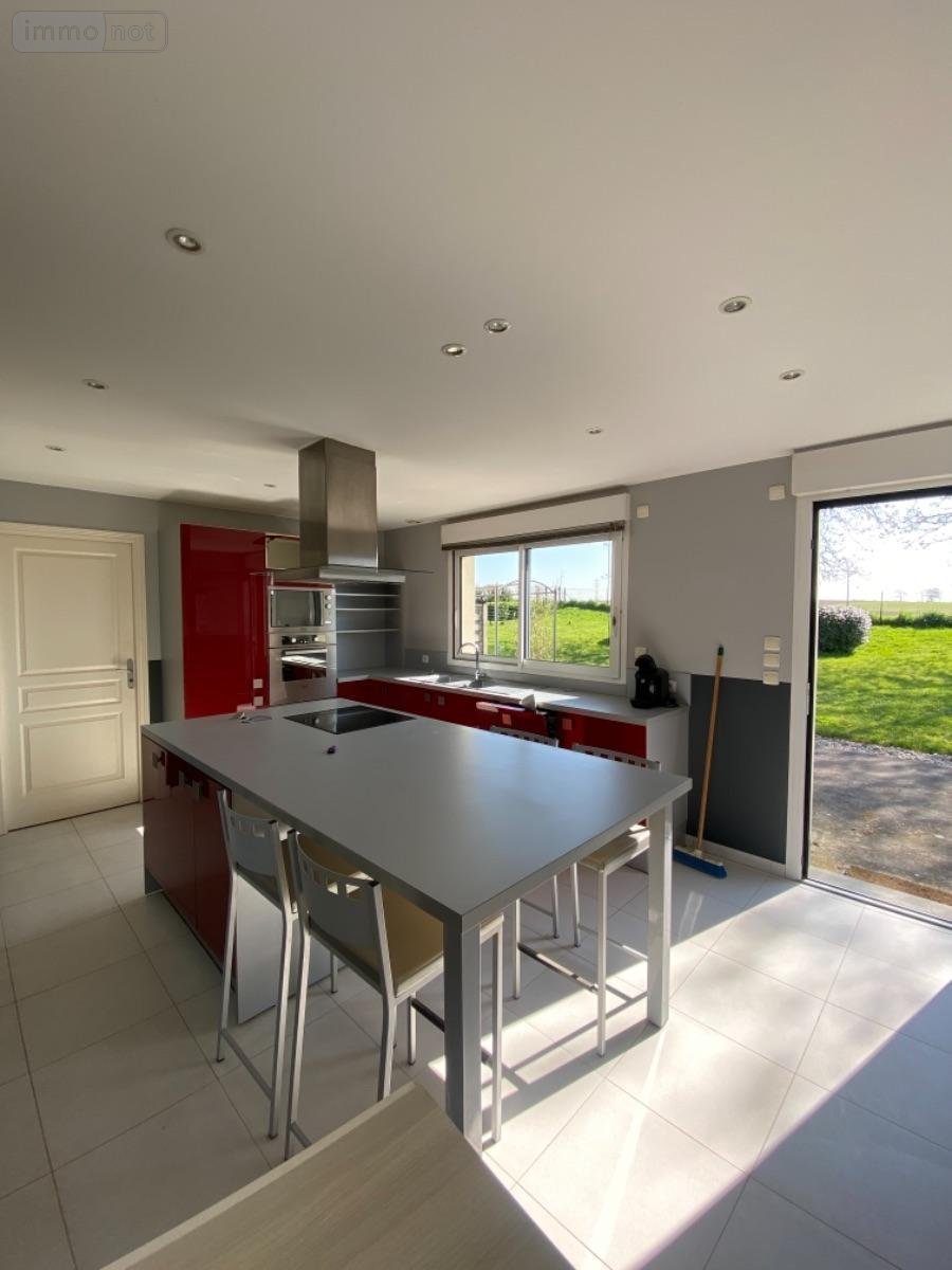 Ce pavillon vous offre au rez-de-chaussée un vaste séjour -salon très lumineux avec poêle à bois (36 m²), une cuisine indépendante (18 m² ) équipée offrant un accès direct sur la terrasse bien exposée et le jardin, un cellier, une chambre ou bureau