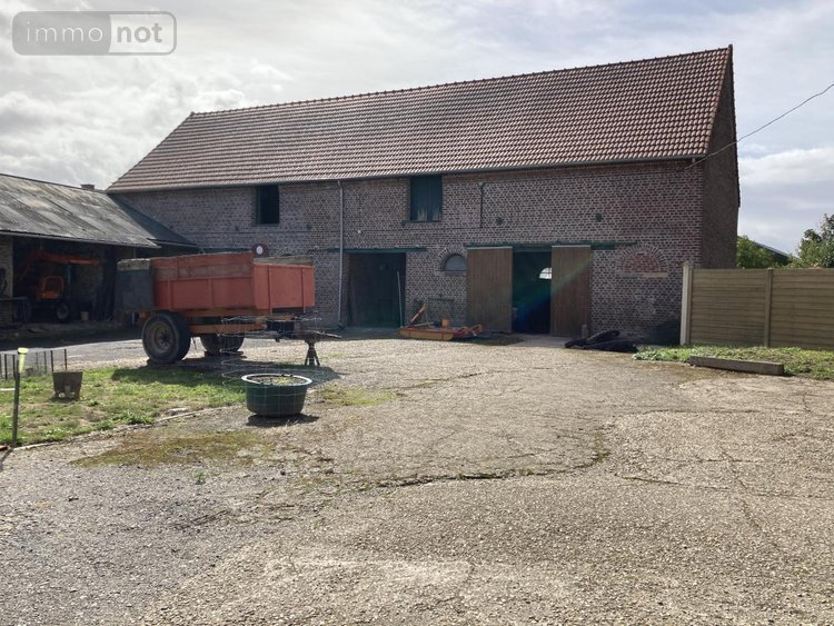 EN EXCLUSIVITE - GUEMAPPE - ARRAS Est - PAS DE CALAIS 62 - CORPS DE FERME bâti sur 2965m² et comprenant hall 9m², grand séjour avec cheminée marbre et moulures 56m², cuisine équipée 23m², sdb 6.5m² et wc. Au 1er étage : palier 8m², 3 chambres (23m², 23m² et 30m²) sdb. Au 2ème étage : grenier 50m². Chauffage central gaz et poêle à bois, menuiseries double vitrage pvc. Caves, garages étables, grange, hangar, cour et jardin.