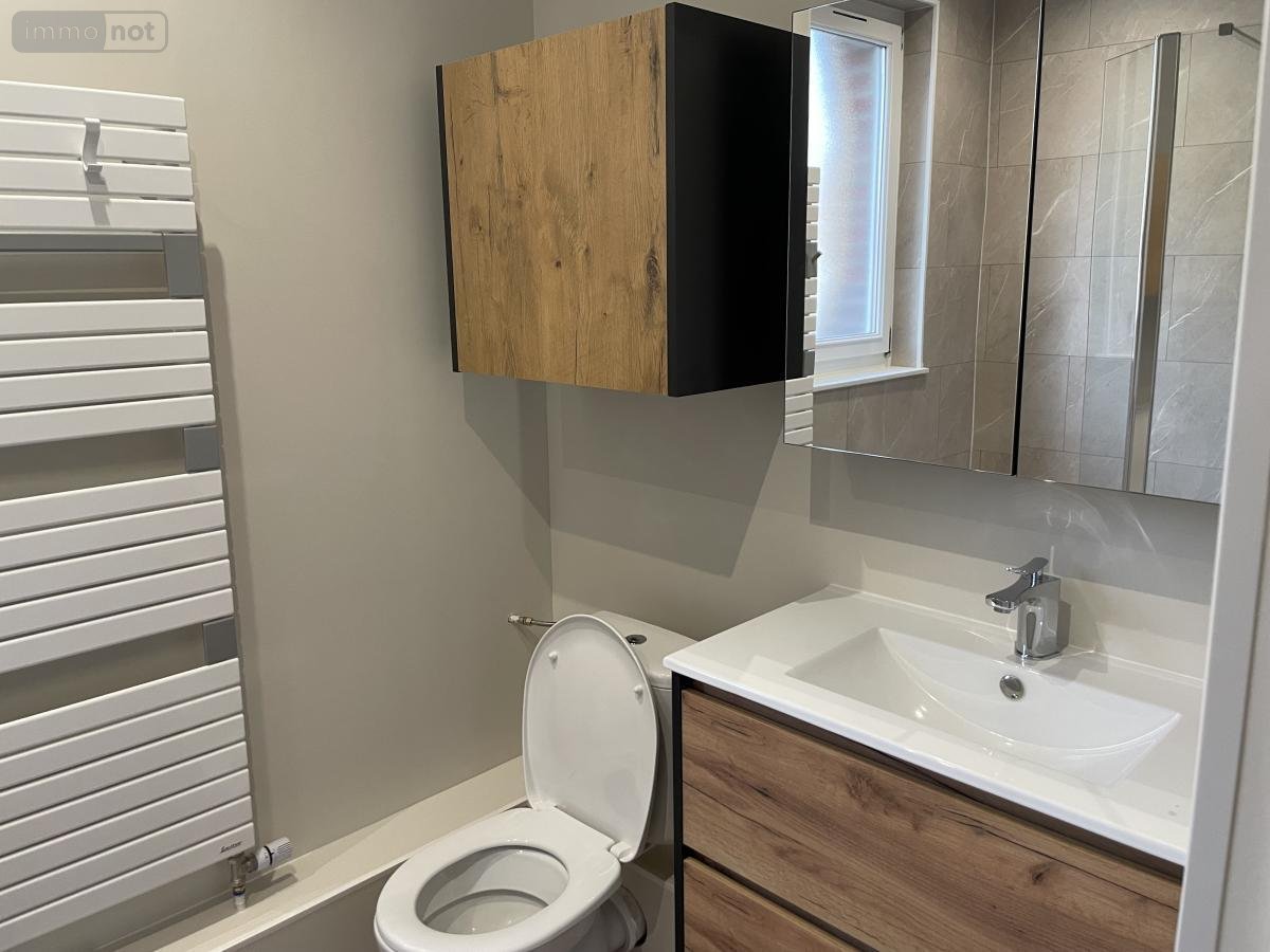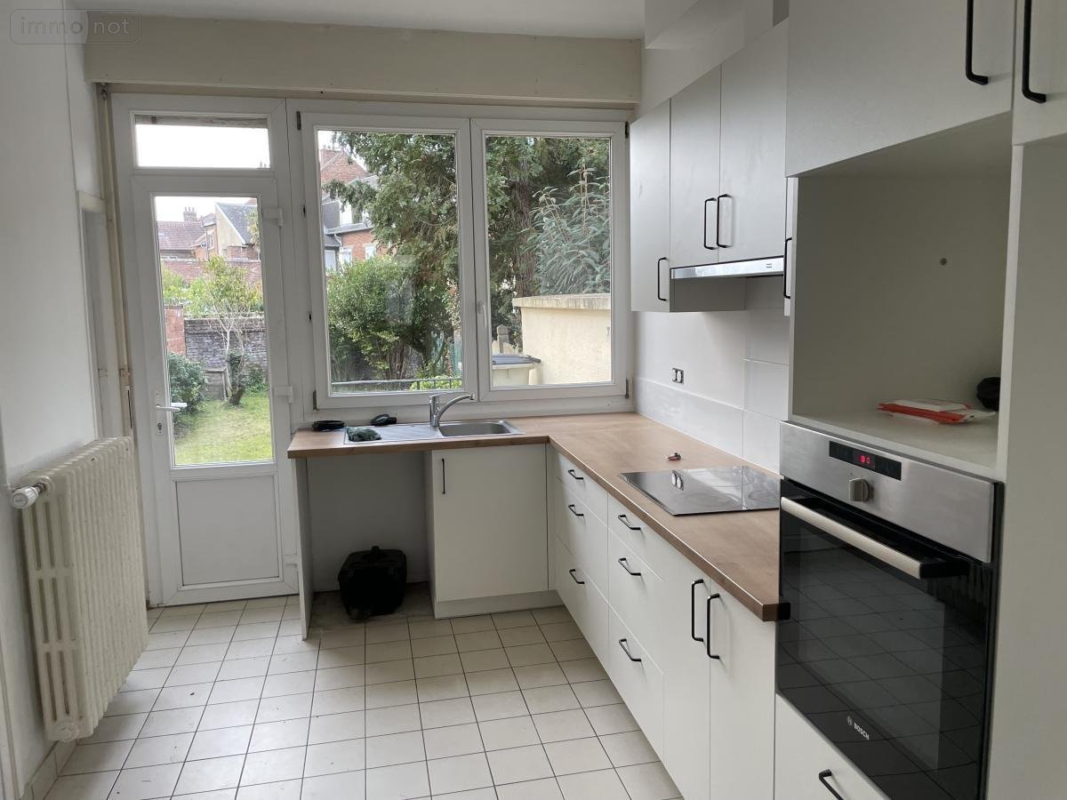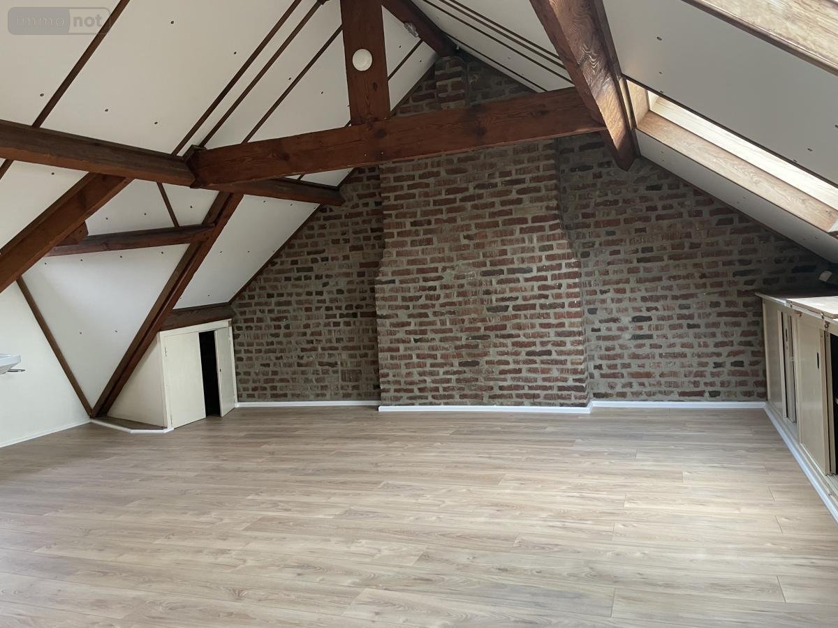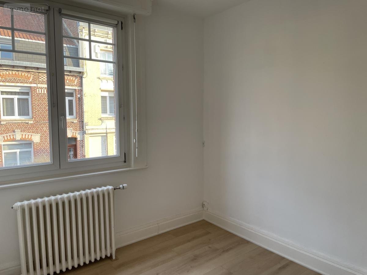 A ARRAS, maison de ville à louer, secteur arrière gare comprenant au rez-de-chaussée hall d'entrée, séjour, salle à manger, cuisine aménagée, WC, au 1er étage 2 chambres, salle de douche avec WC. Au 2éme étage, 1 grande chambre.