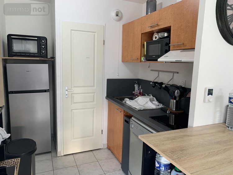 A louer, dans résidence sécurisée, appartement de type 2 comprenant une entrée avec placard, une pièce principale avec coin cuisine équipée (plaque et hotte) et meublée, une chambre avec placard, une salle de bains avec WC.