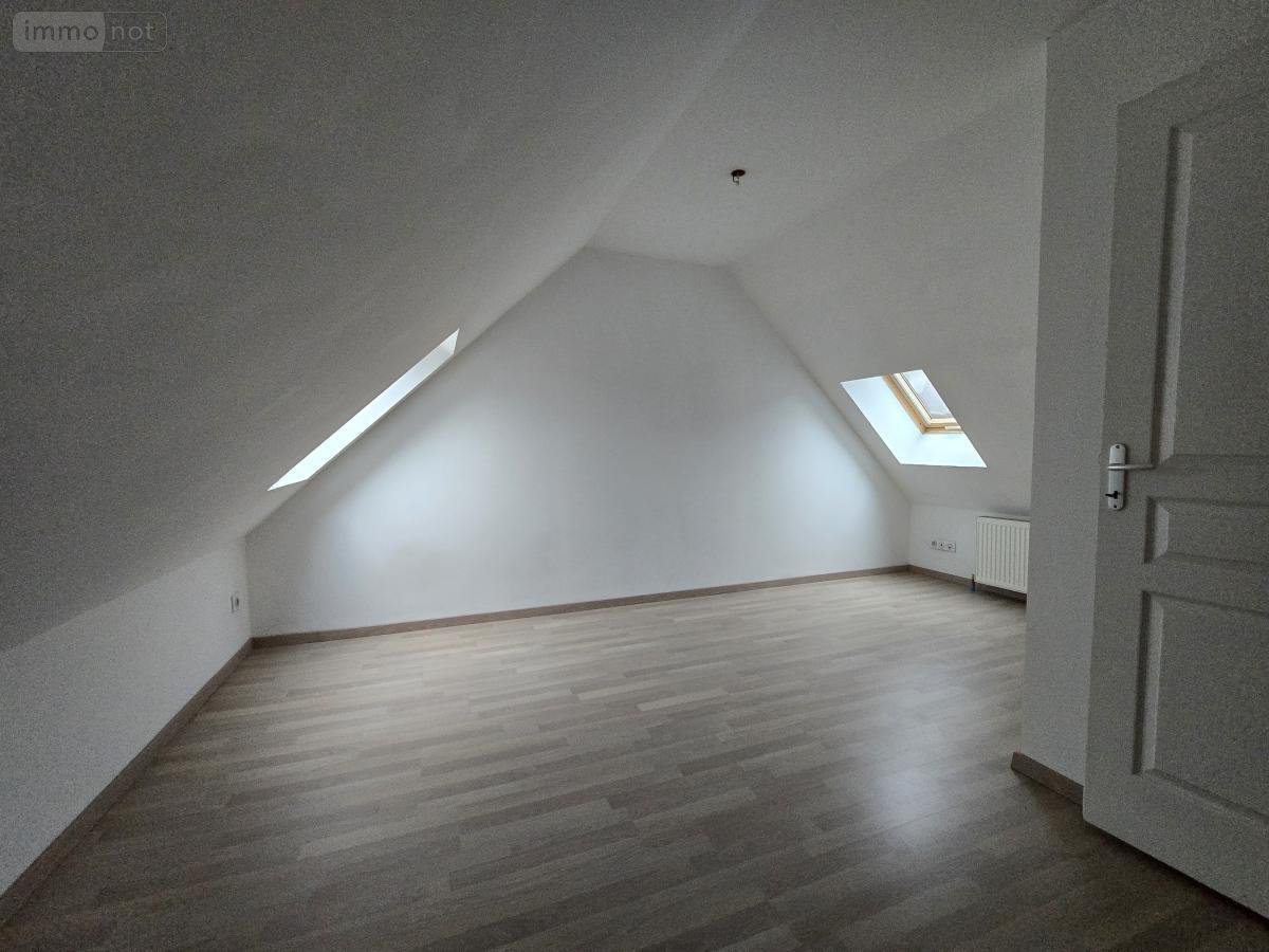 A louer, proche écoles, commerces et arrêt de bus à ST LAURENT BLANGY , un appartement en duplex comprenant une entrée avec escalier donnant sur séjour, cuisine meublée équipée (four, lave-vaisselle, plaque électrique et hotte), 1 chambre ou 1 salon, WC, salle de douche, cellier et petite buanderie (emplacement machine à laver). A l'étage: 2 chambres (9.5m² environ) + 1 bureau ou dressing.