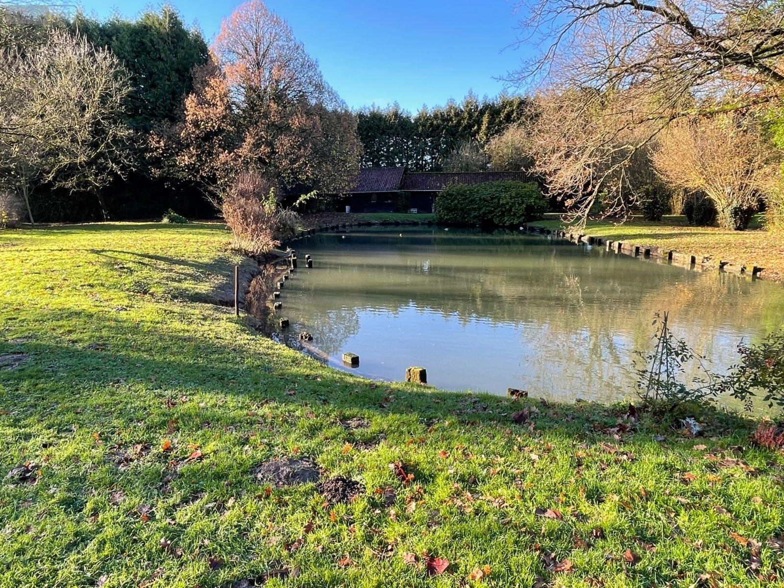 À l'extérieur, un magnifique parc arboré avec étang, offrant un espace extérieur agréable.