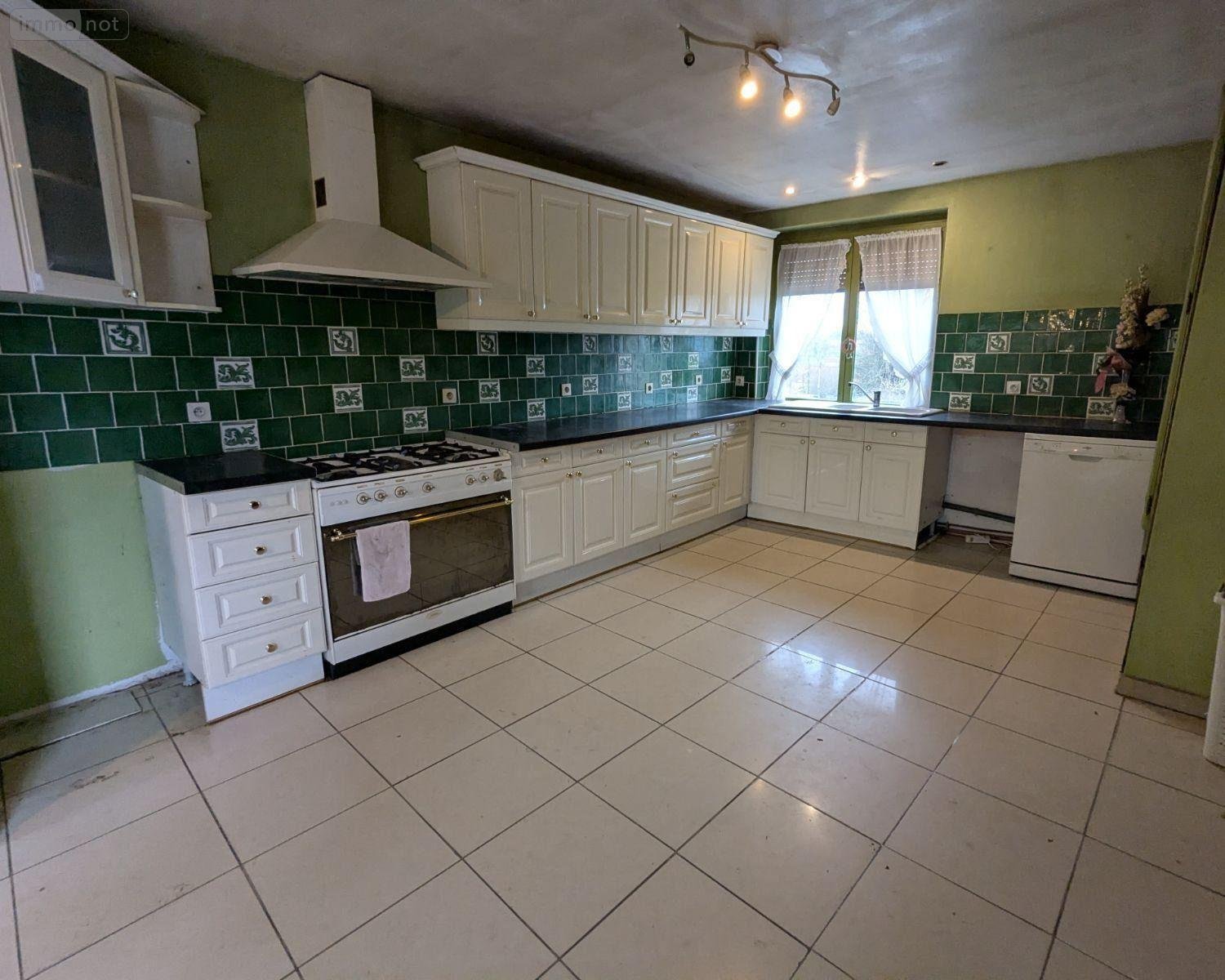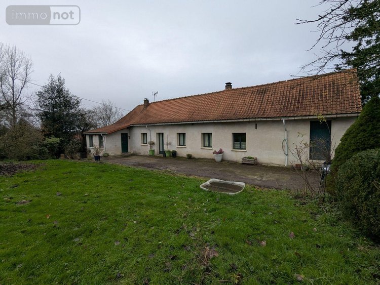A VENDRE - Pas-de-Calais - DIEVAL - MAISON DE PLAIN-PIED TYPE LONGERE 3 CHAMBRES DANS UN CADRE ISOLÉ AVEC BEAU TERRAIN, comprenant : cave, au rez-de-chaussée : vaste cuisine meublée, wc, spacieuse salle de séjour et salon (conduit de cheminée), buanderie, 3 chambres, salle de bains avec douche et wc, au semi-palier : sas avec bureau et wc (avec entrée indépendante), au 1er étage : grenier aménageable (poss. 3 pièces).