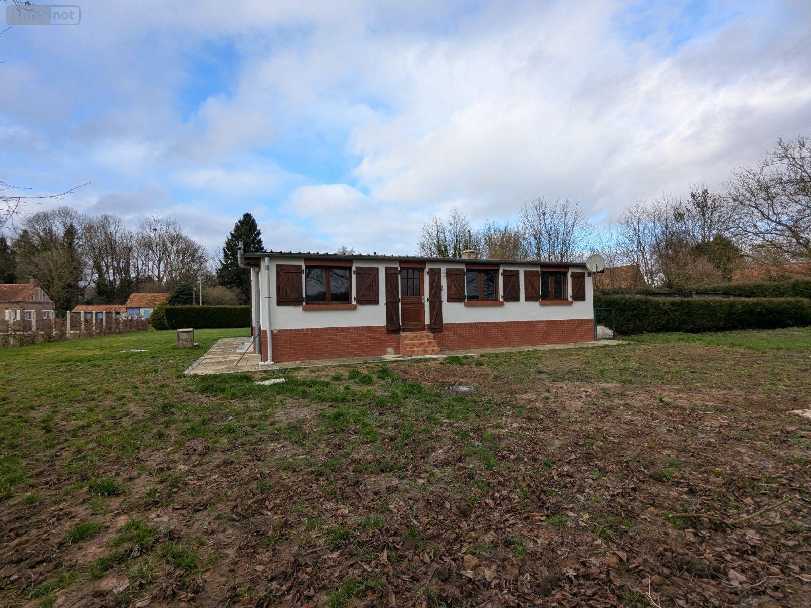 A VENDRE - Pas-de-Calais - VILLERS L'HOPITAL - MAISON DE PLAIN-PIED 3 CHAMBRES AVEC GARAGE ET BEAU TERRAIN comprenant : couloir d'entrée, salle de séjour et salon ouverte sur cuisine, cellier, bureau, couloir desservant : salle de bains avec douche, wc, 3 chambres dont 2 avec rangements. Toiture refaite en 2008, fenêtres bois double vitrage avec volets battants, poêle à pellets et radiateurs électriques récents, assainissement individuel conforme, garage et dépendance, secteur calme et agréable, sans vis-à-vis, on pose ses meubles.
